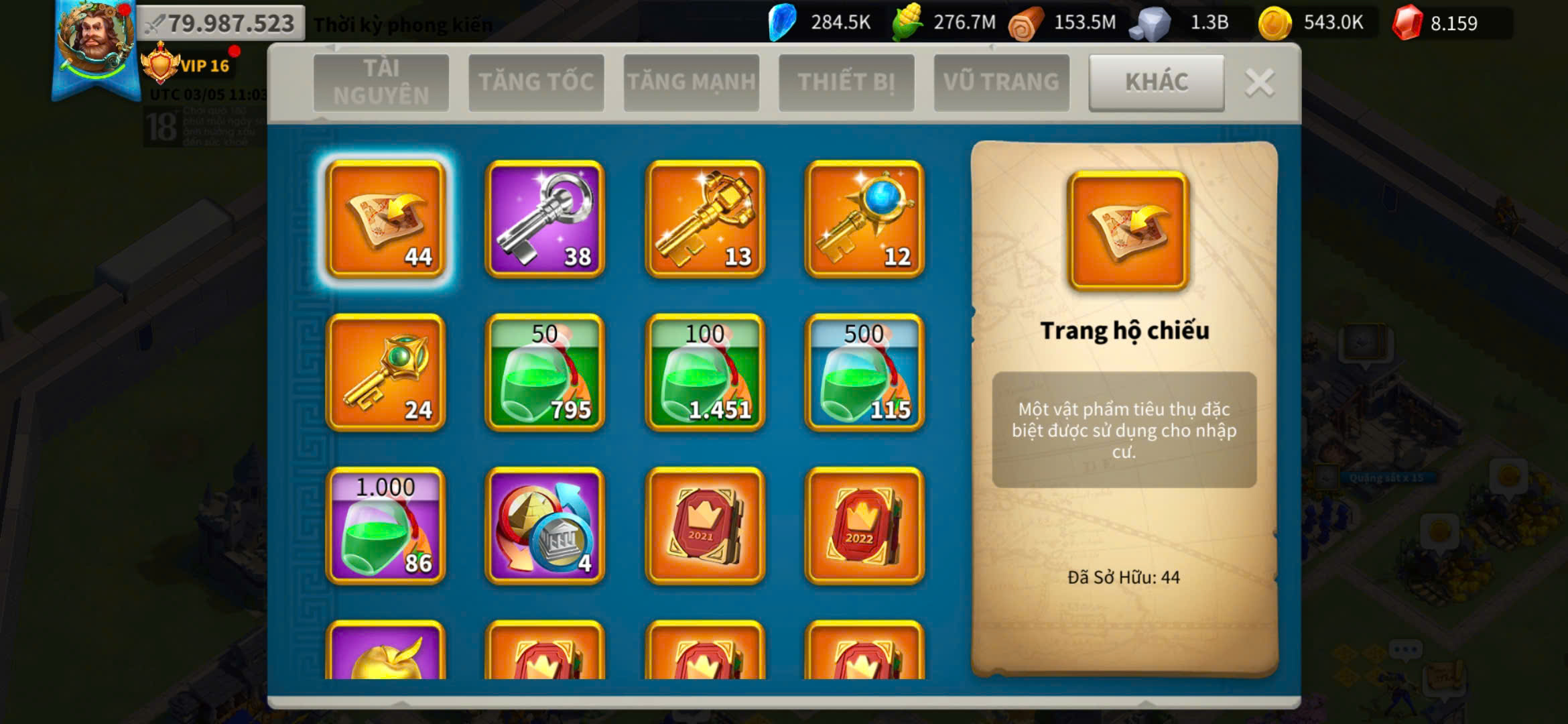 ACC VIP 16 full 5 sét cam nhà thiên đỉnh bộ 47 vé mua bay đi kẹp 1 farm