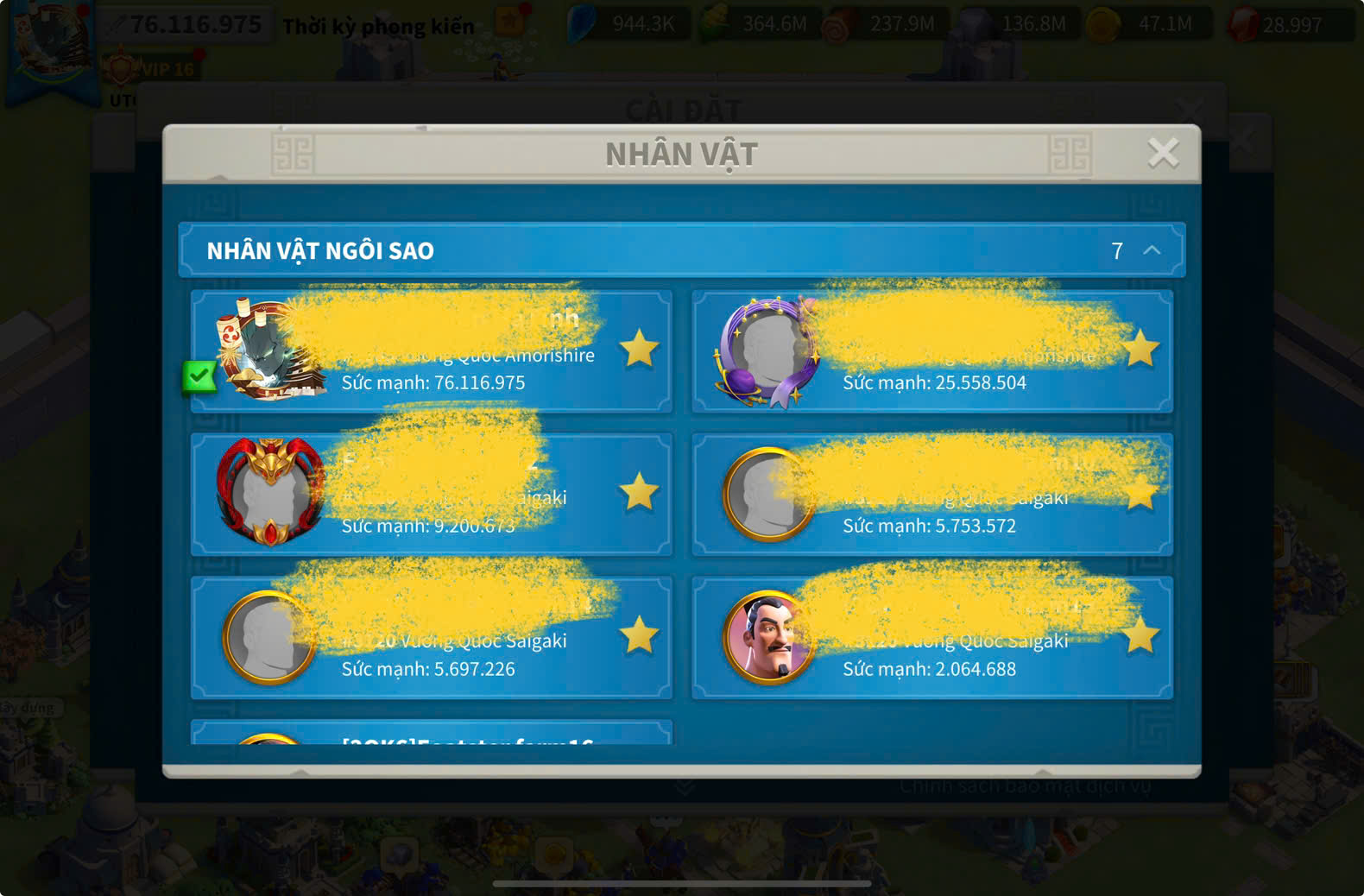ACC VIP 16 max 15 cam full 4 sét ngon kẹp 5 farm