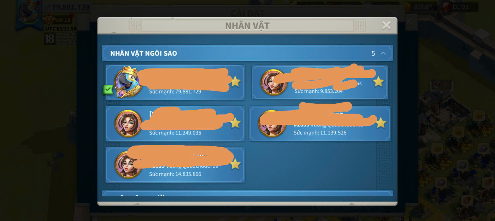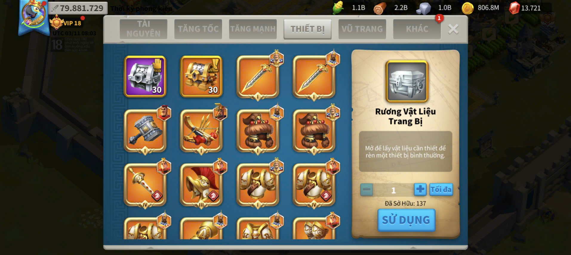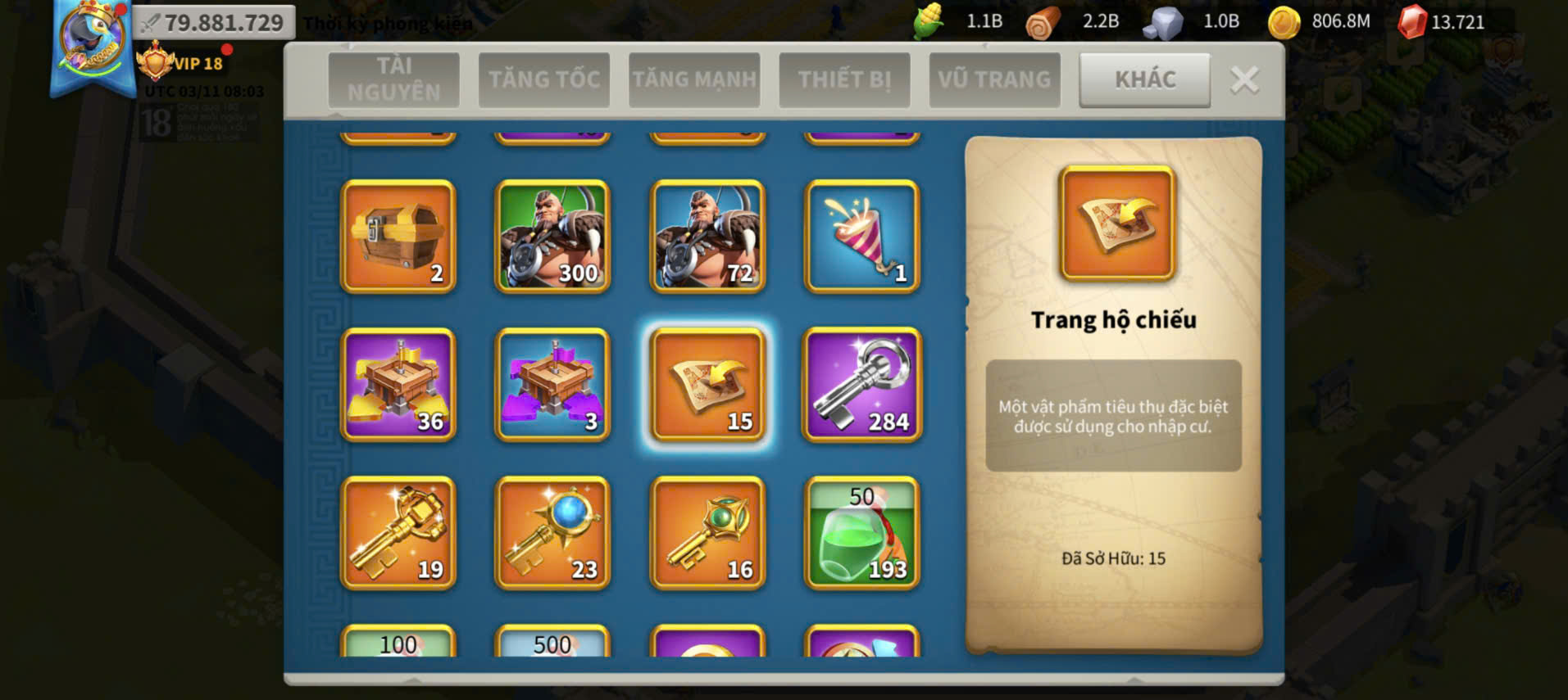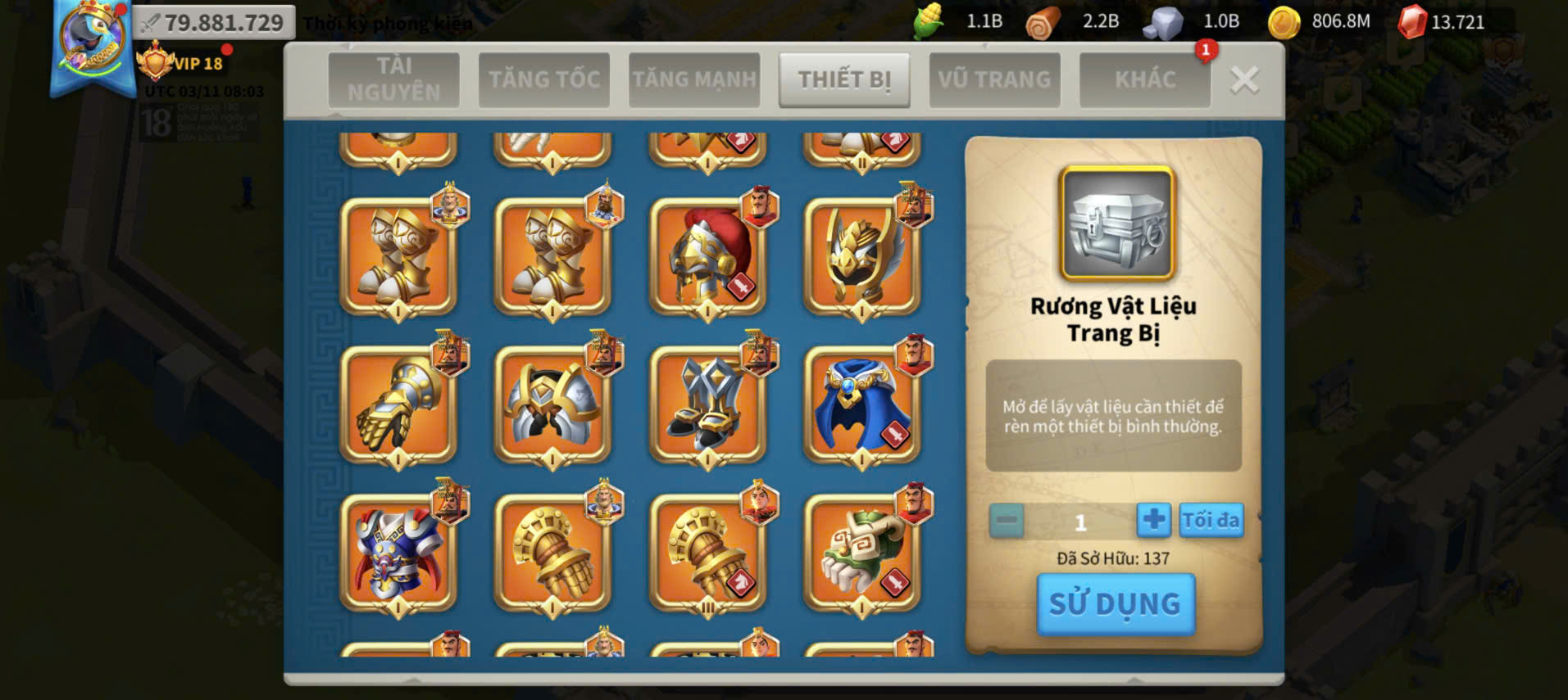 ACC VIP 18 full sét talen kỵ + 5 sét cam vũ trang ngon kẹp 4 acc farm