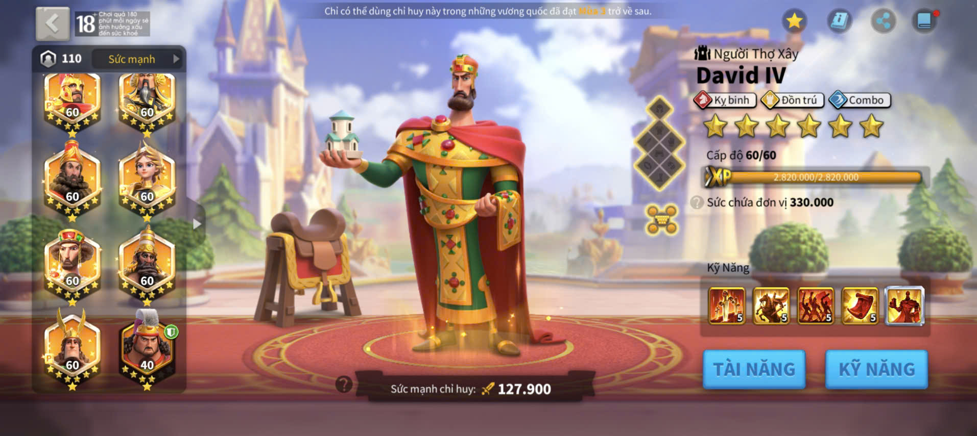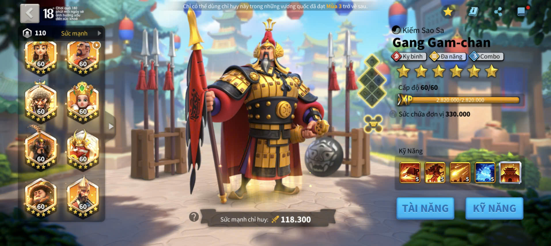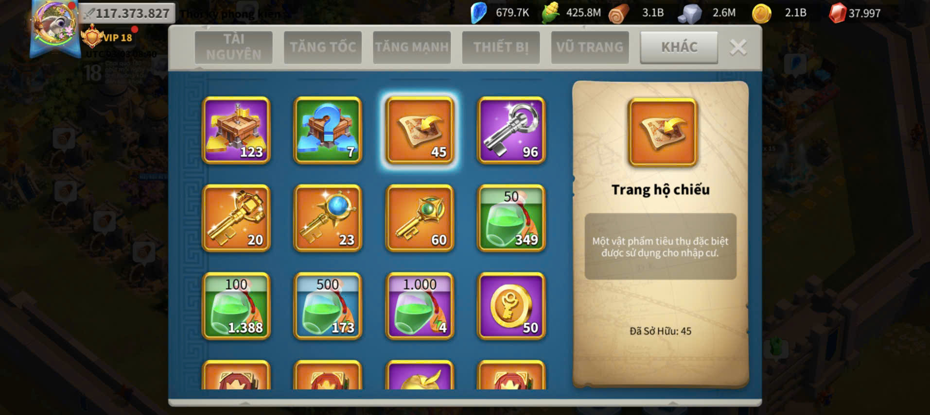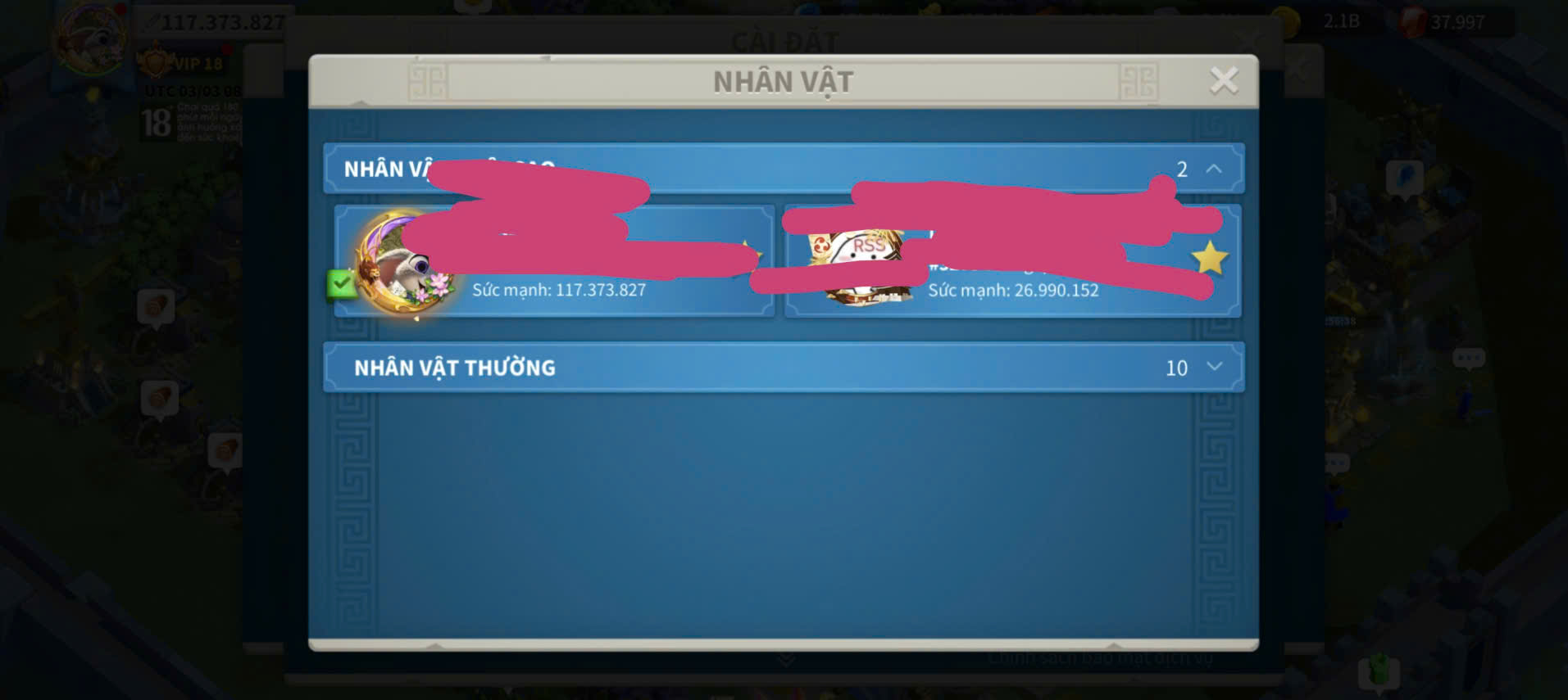 ACC VIP 18 Nhà Thiên đỉnh kỵ full 2 sét talen 6 sét cam có 45 vé