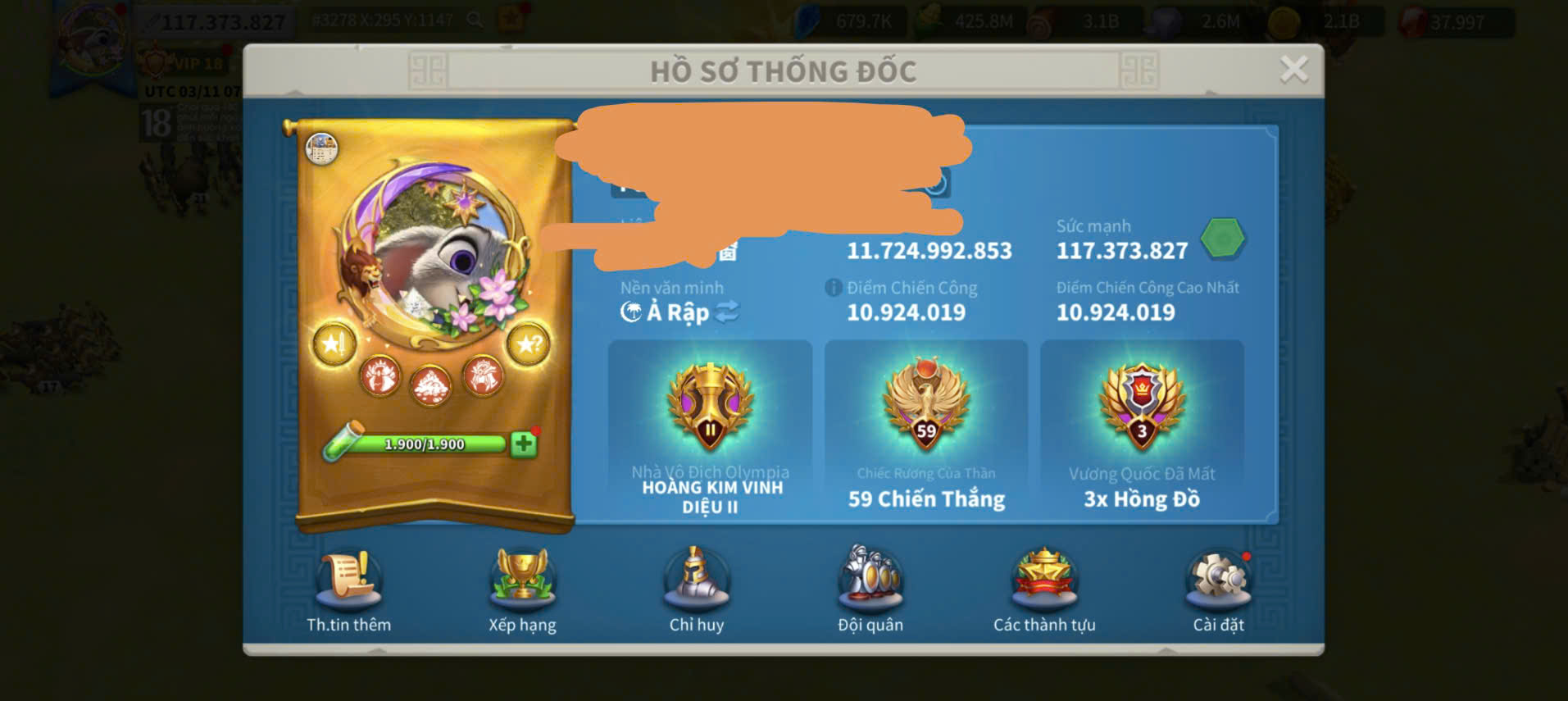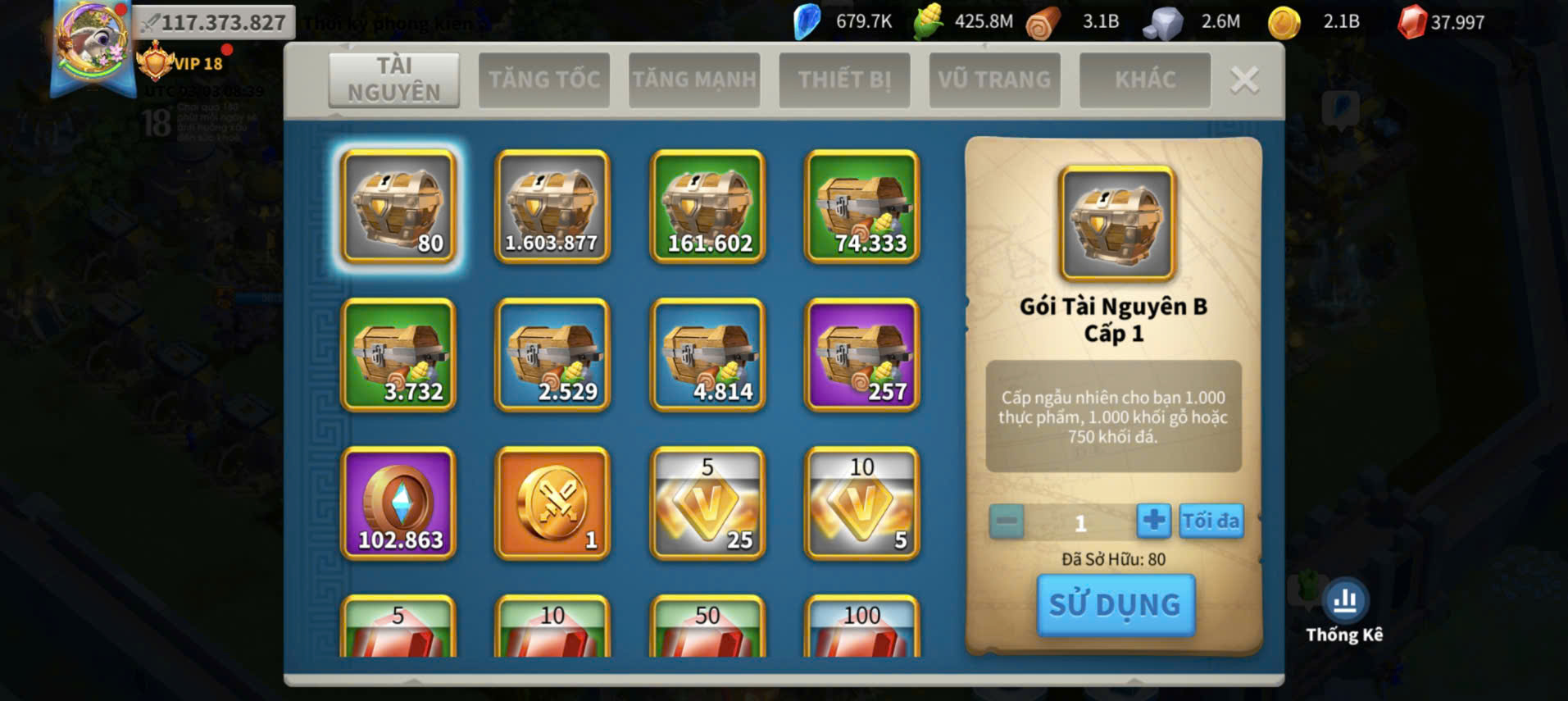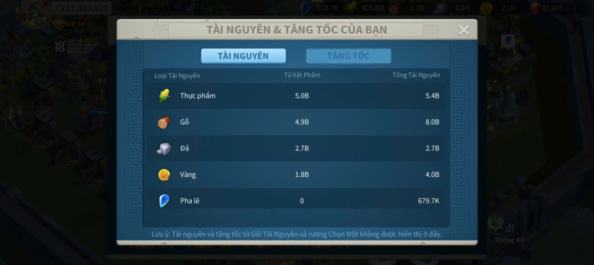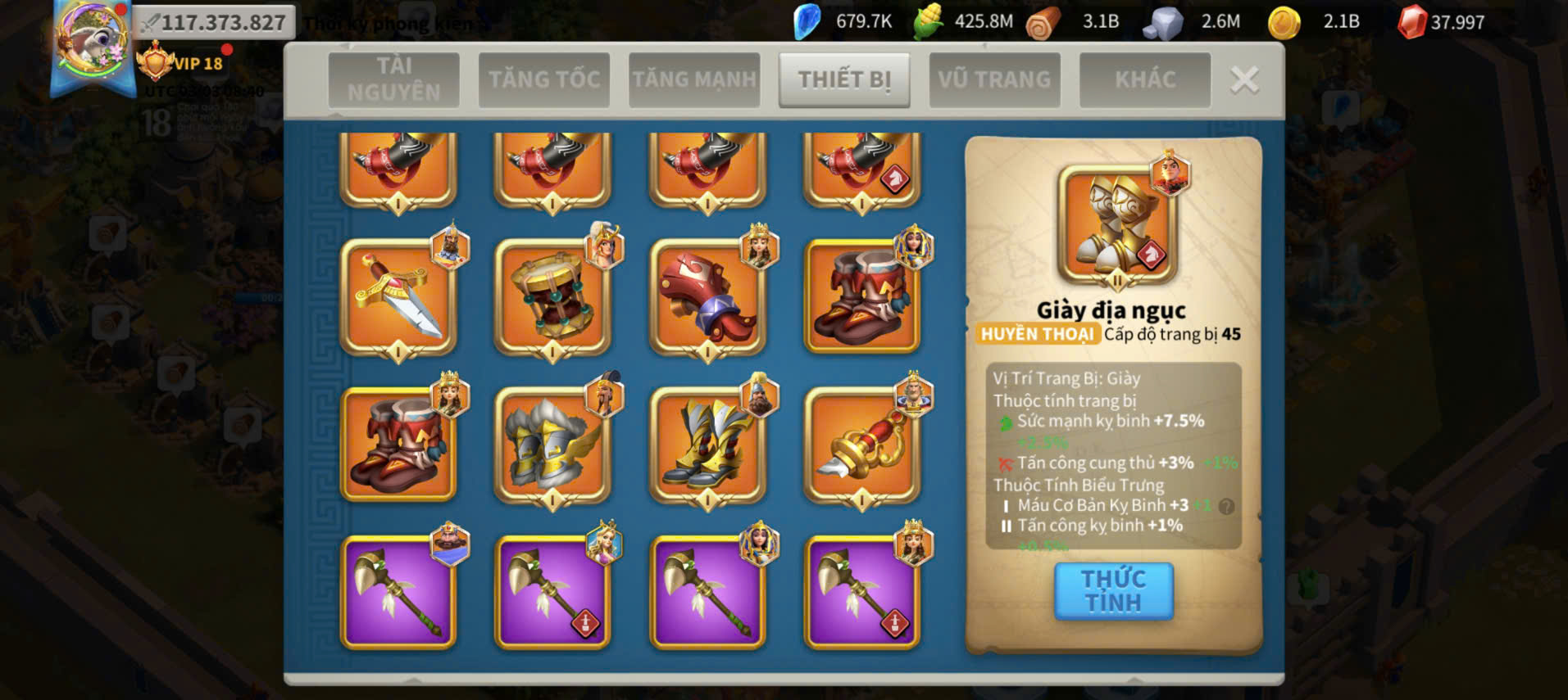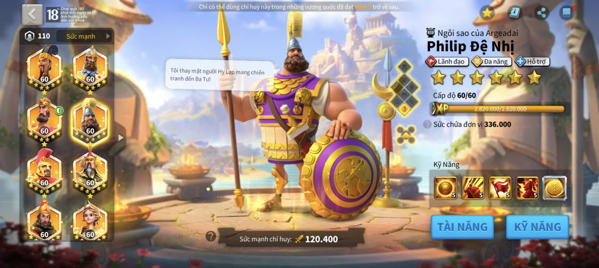 ACC VIP 18 Nhà Thiên đỉnh kỵ full 2 sét talen 6 sét cam có 45 vé
