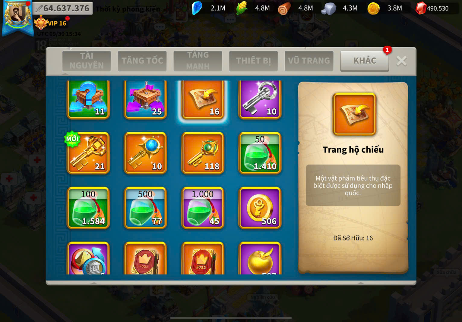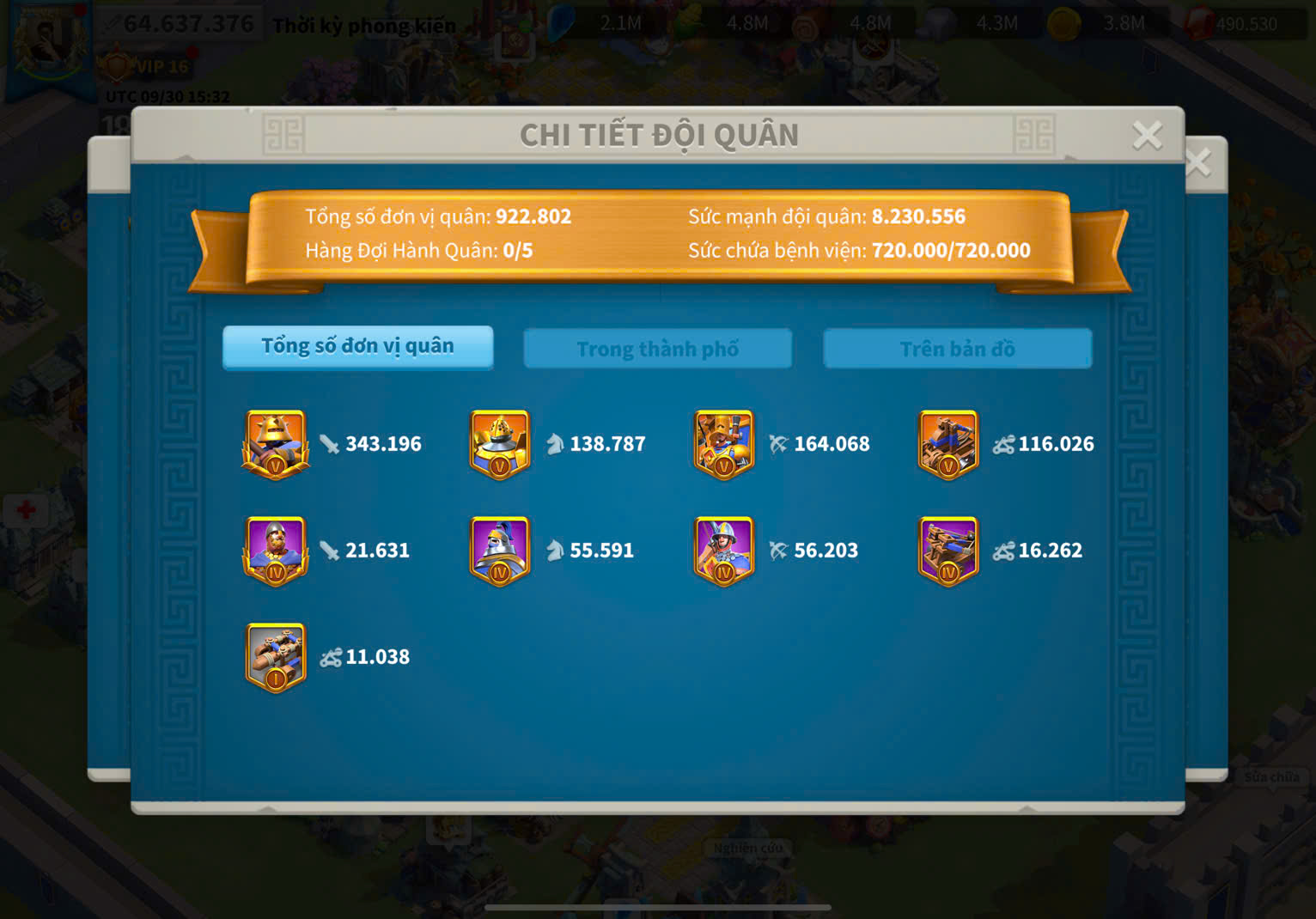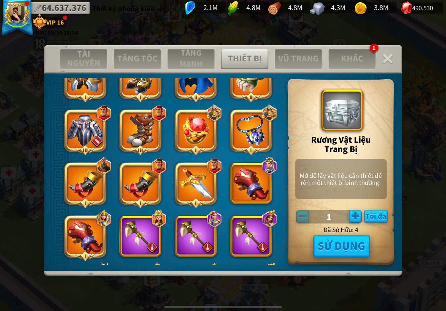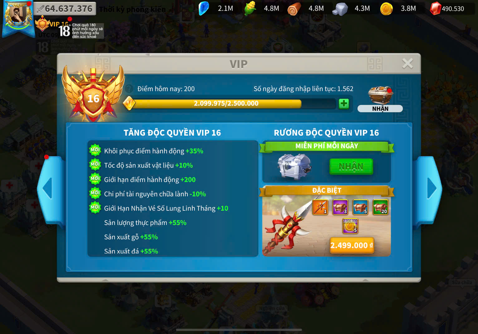 Acc cận vip 17 - dư 500k gem - 1200 ngày tăng tốc - 900 trọc dư- đủ vé - full 4 sét đồ ngon