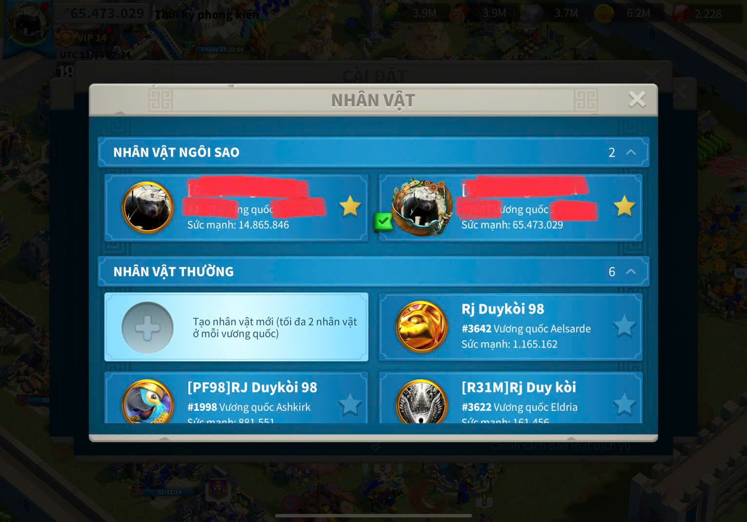 Acc Vip 14 max 4 cam lính 15 + dư 920 trọc cam