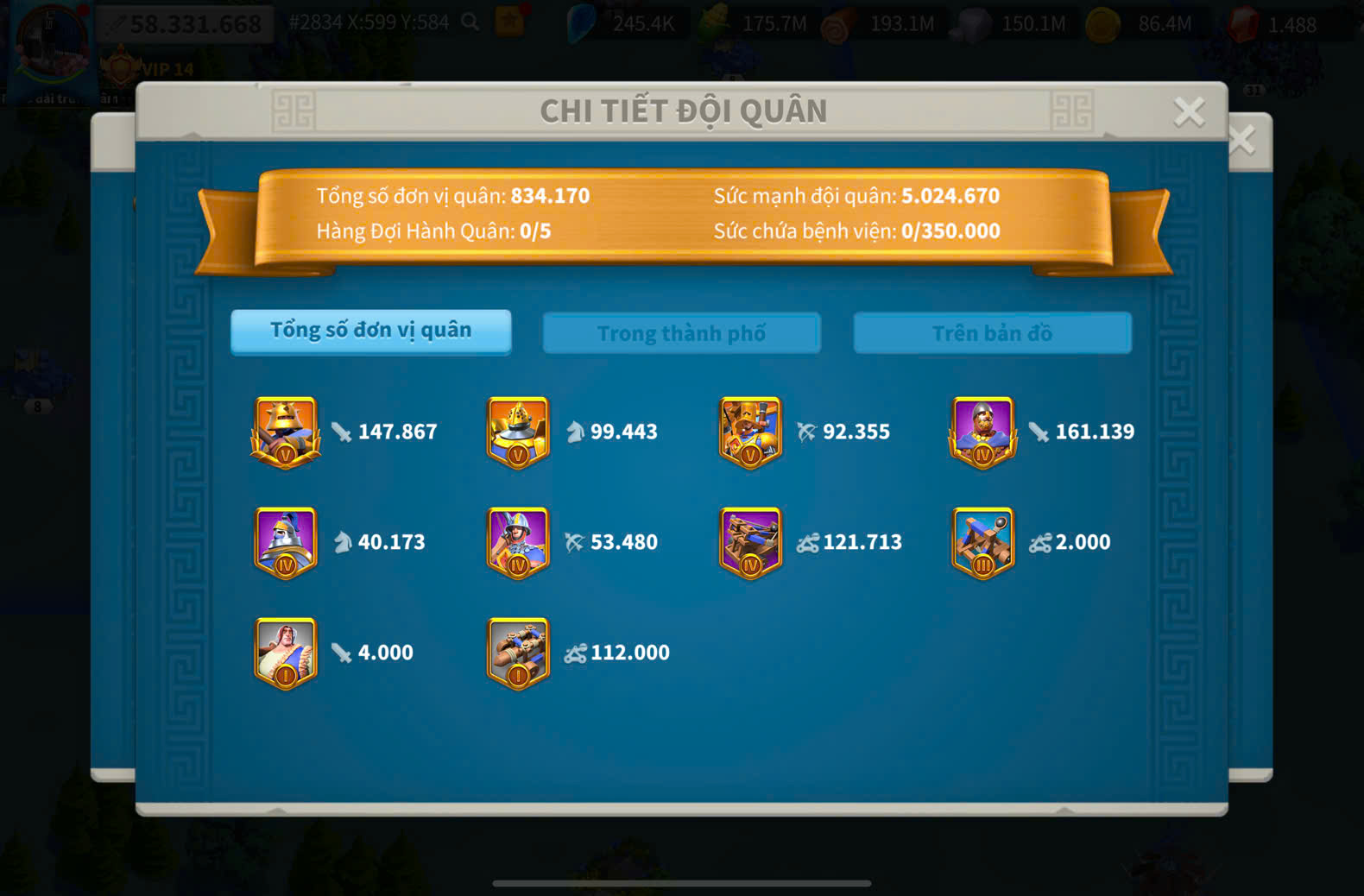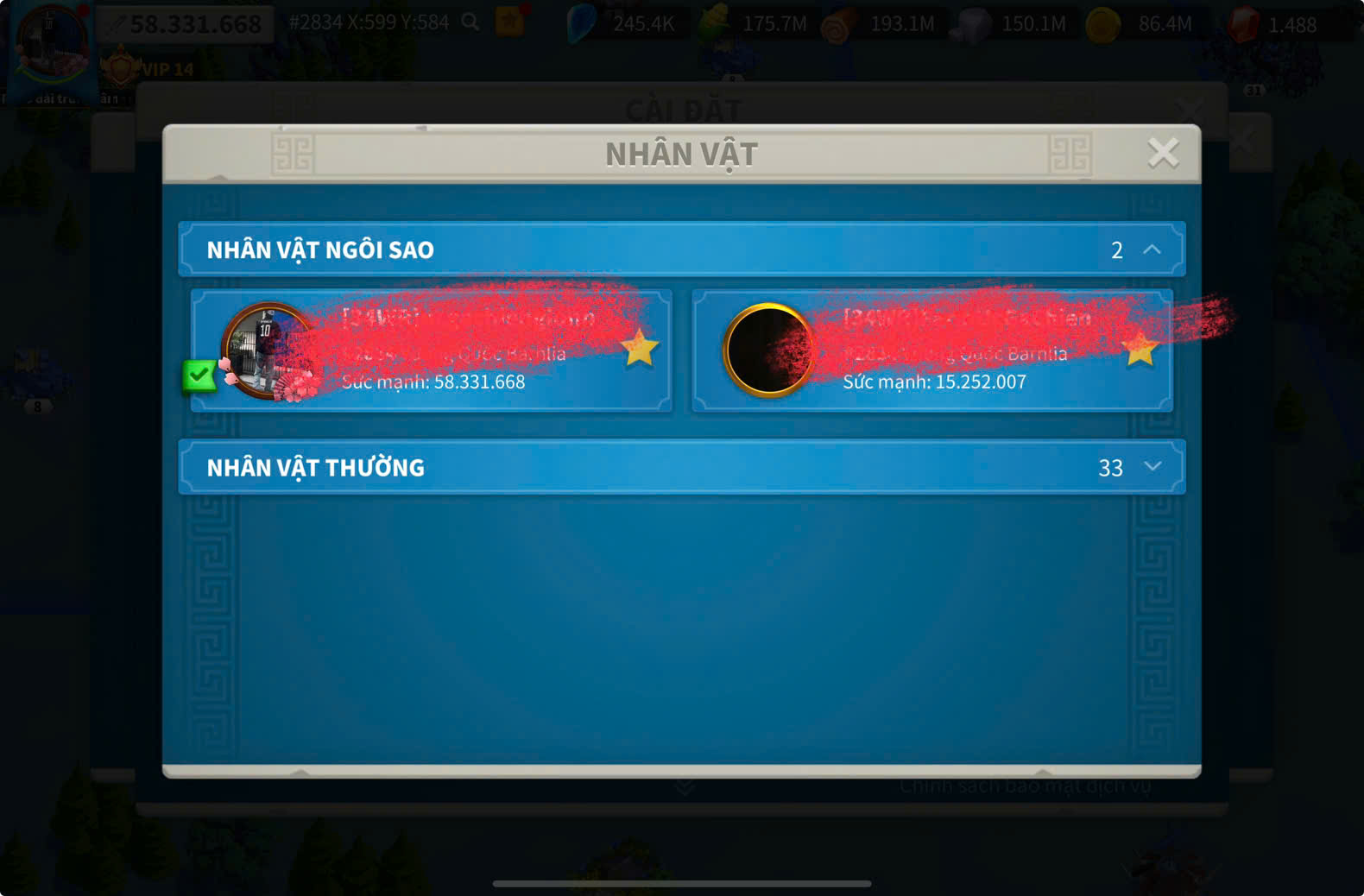 Acc Vip 14 max 5 cam lính t5 + 1 farm 25 ngon