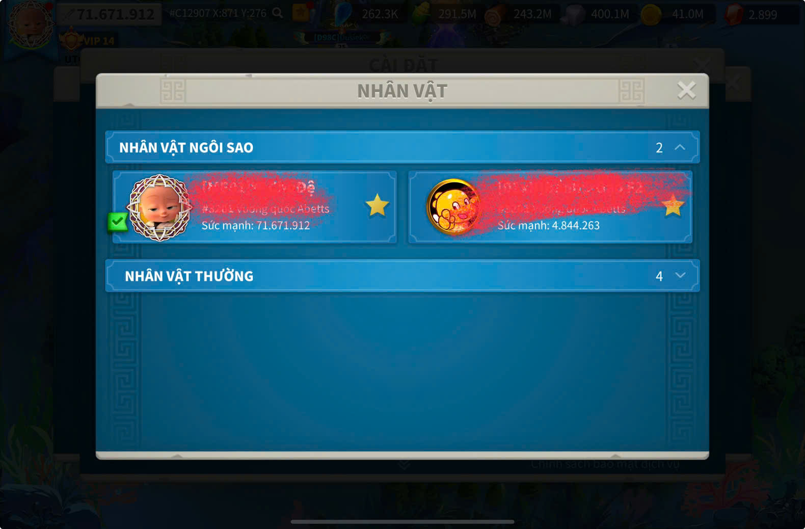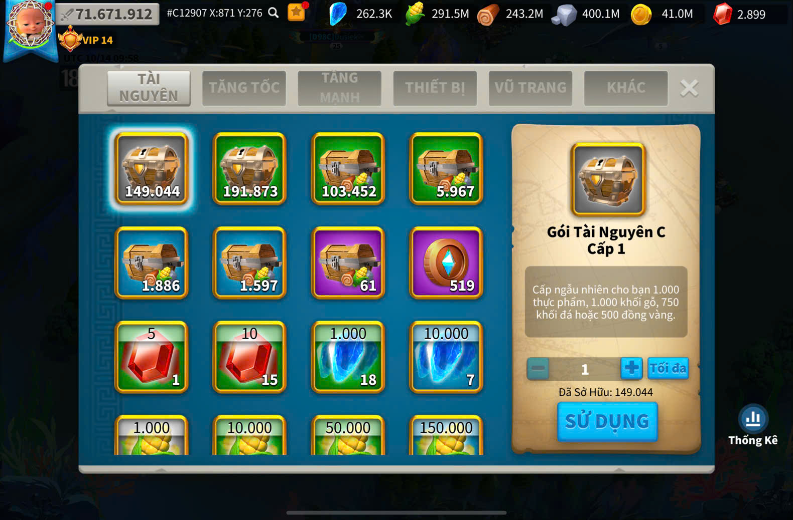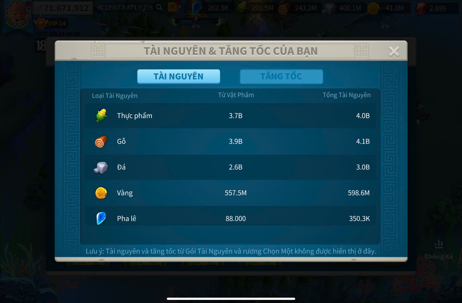 Acc Vip 14 max 5 cam + 2 năm tăng tốc + 10 tỷ rss kho đủ vé