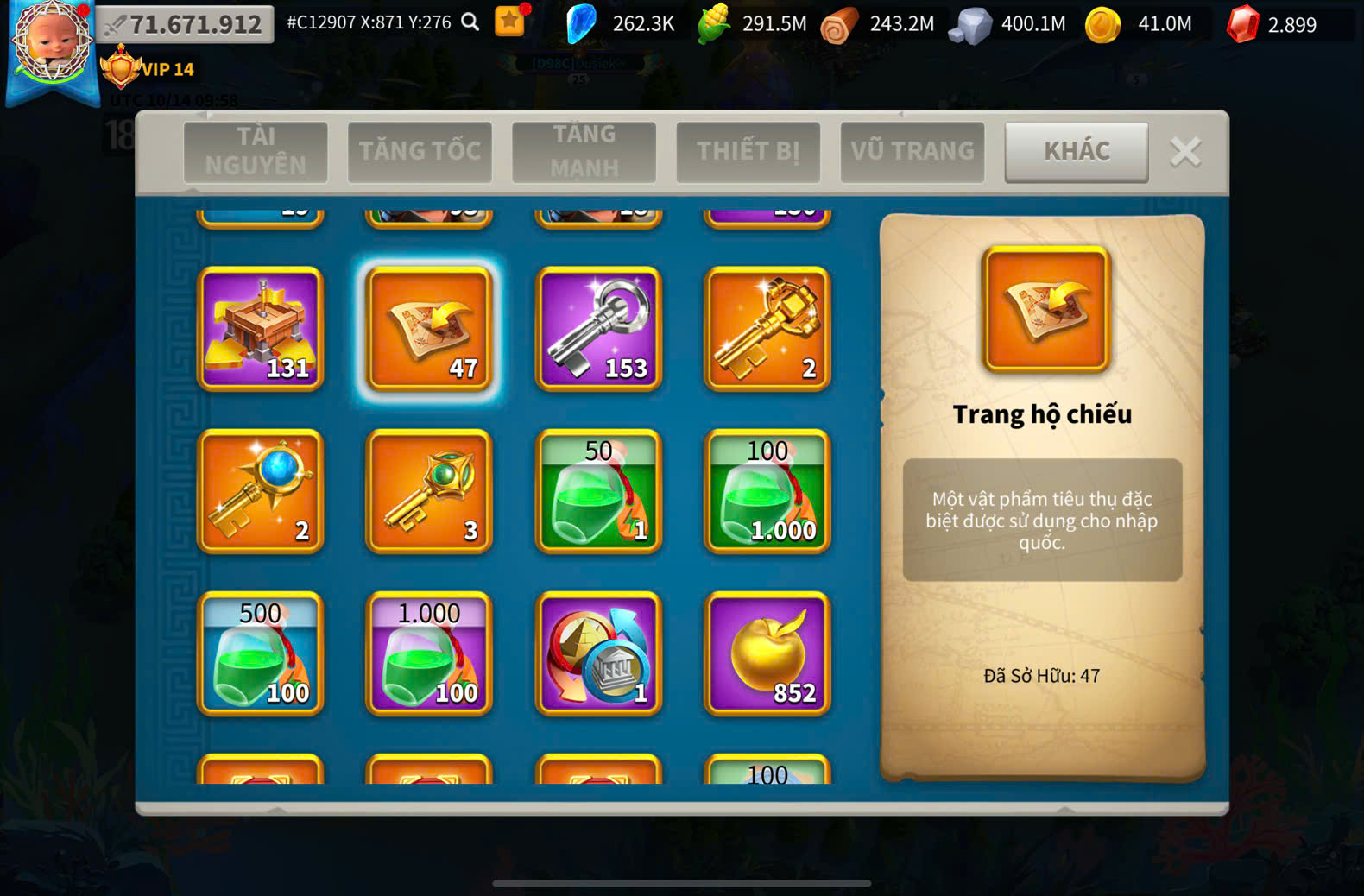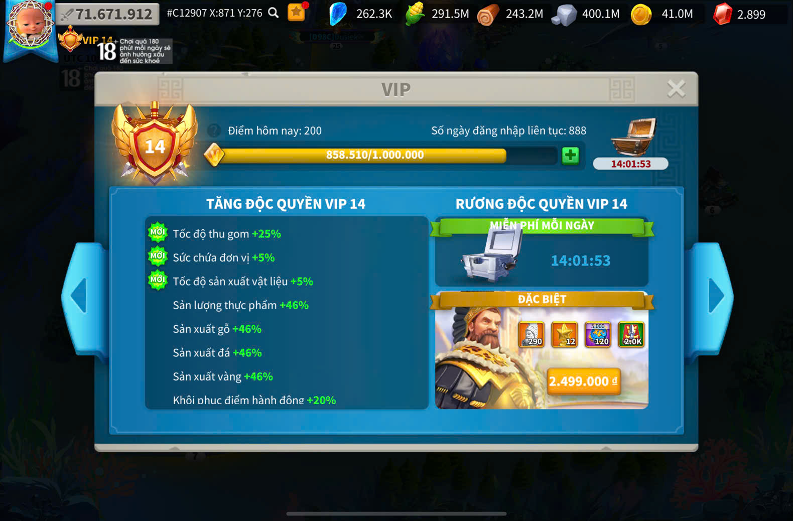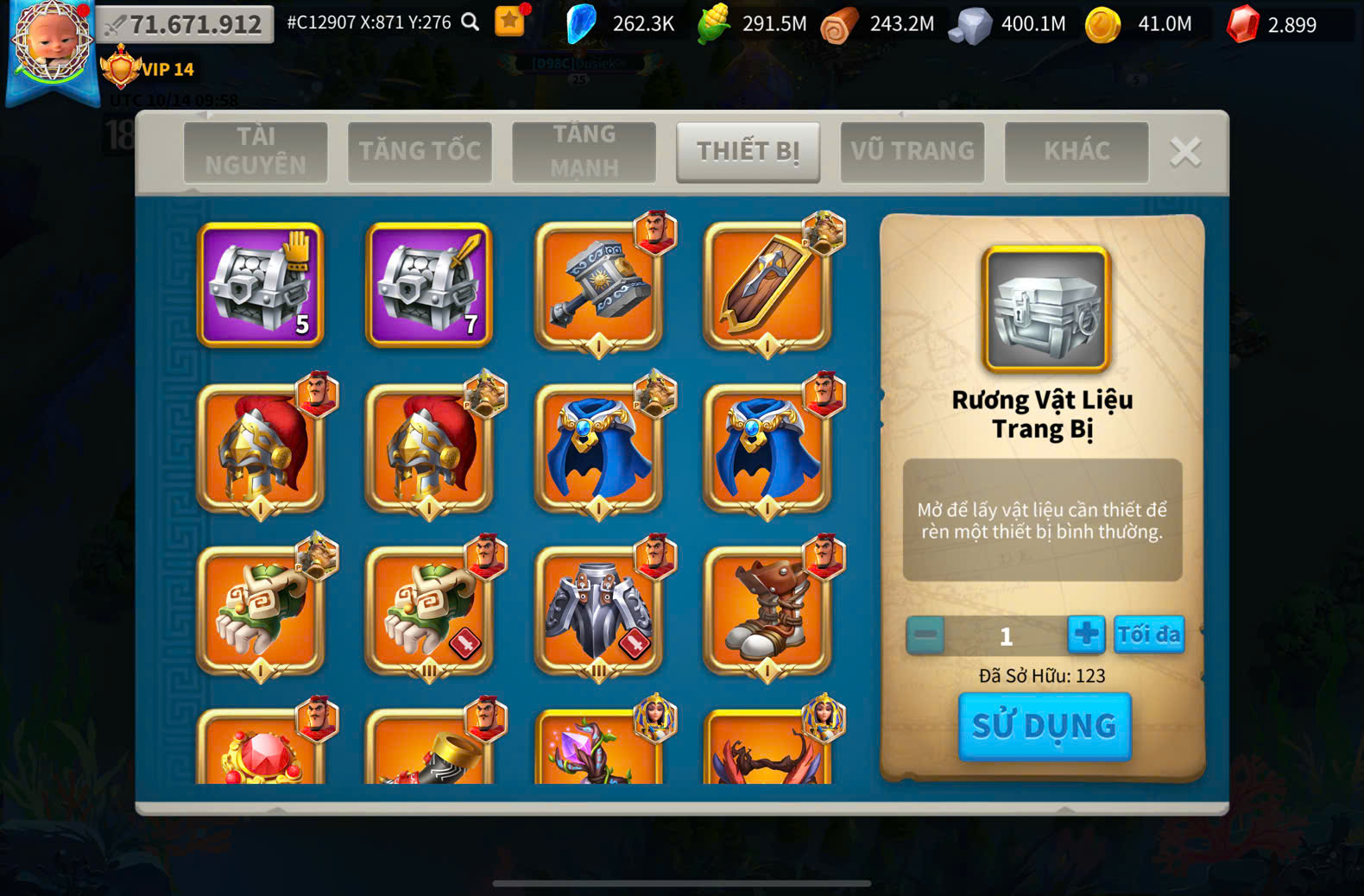 Acc Vip 14 max 5 cam + 2 năm tăng tốc + 10 tỷ rss kho đủ vé
