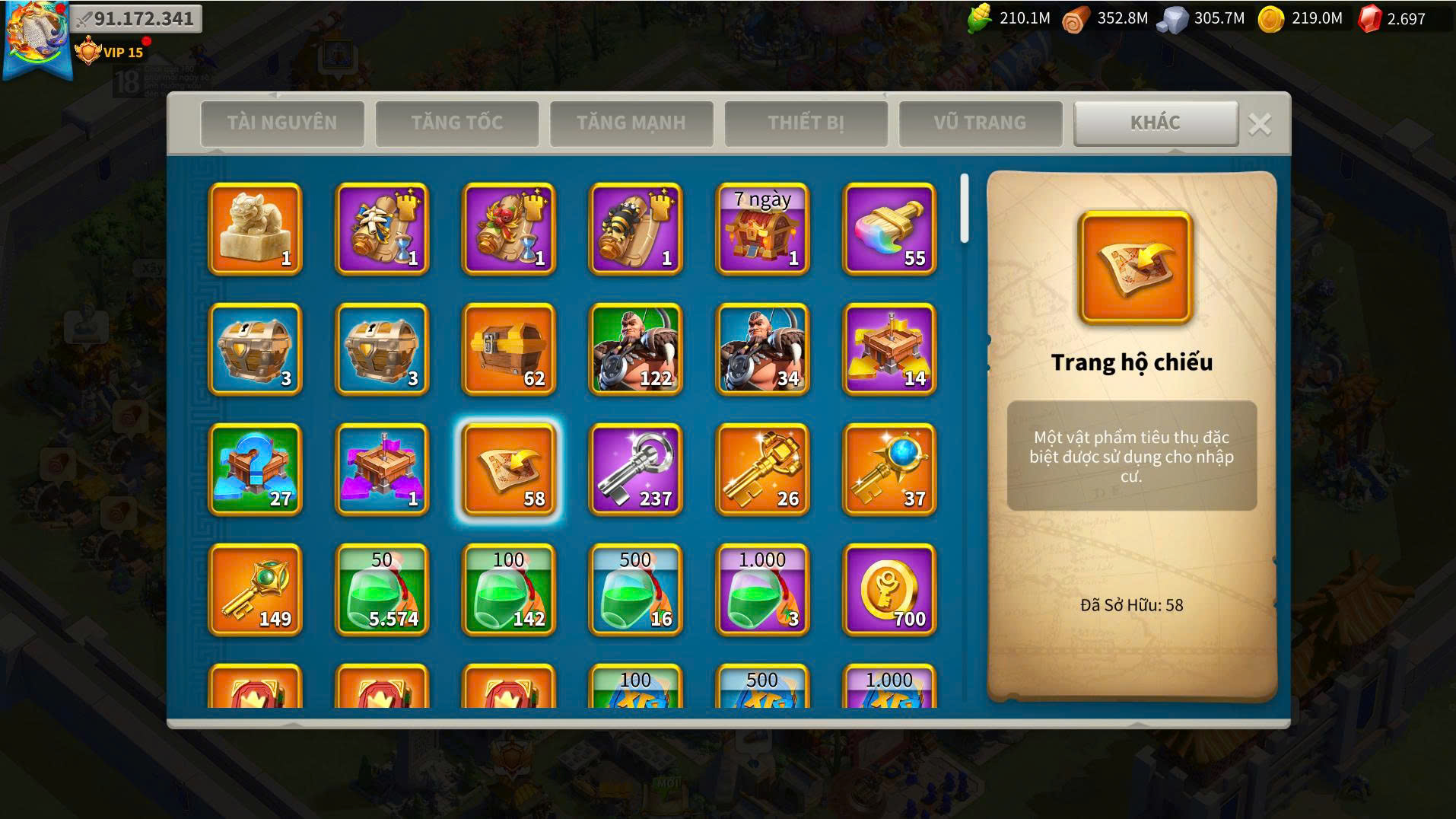 ACC VIP 15 có 5 sét đồ dư 700 trọc có 58 vé , vũ trang ngon
