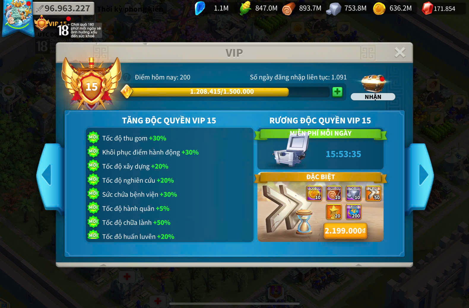 ACC VIP 15 có sét talen bộ nhà thiên đỉnh bộ 20% và dư 171k gem cho anh em đam mê bộ