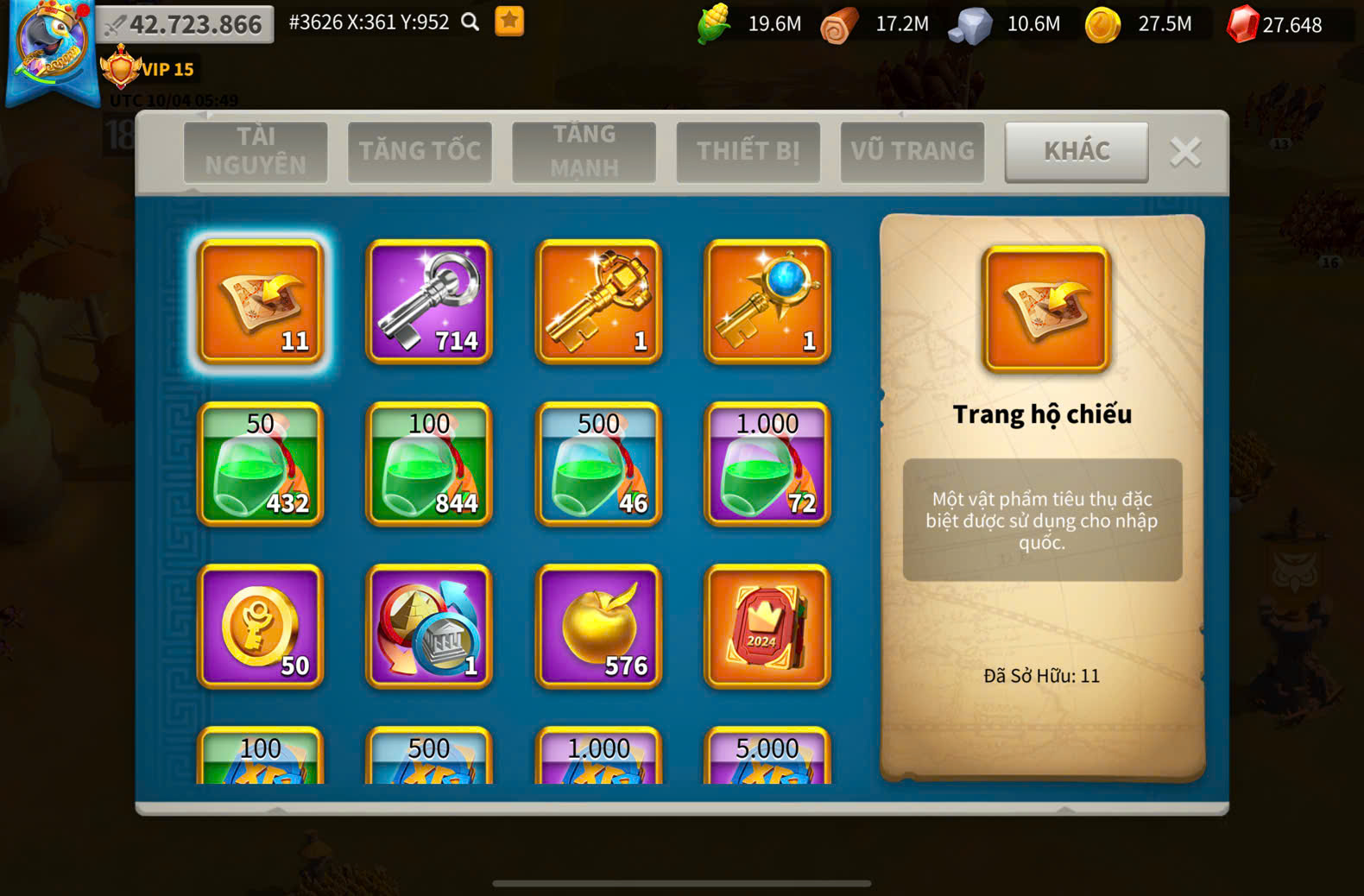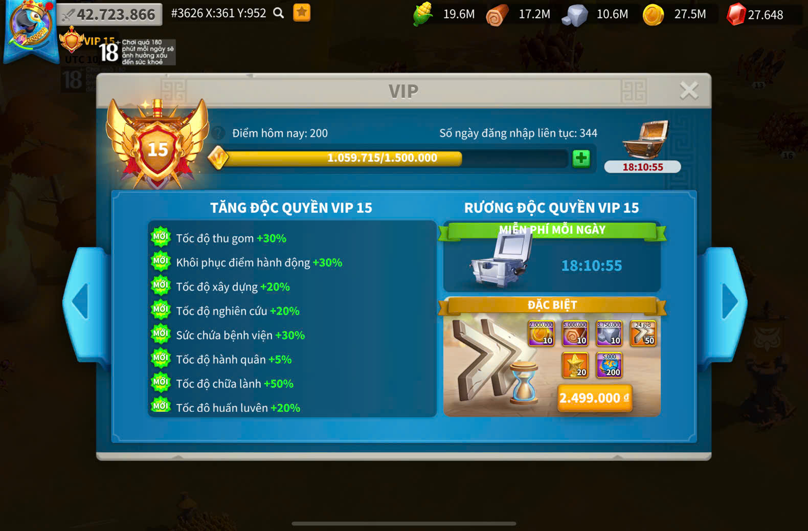 Acc Vip 15 đang kvk 4 max 4 cam ngon