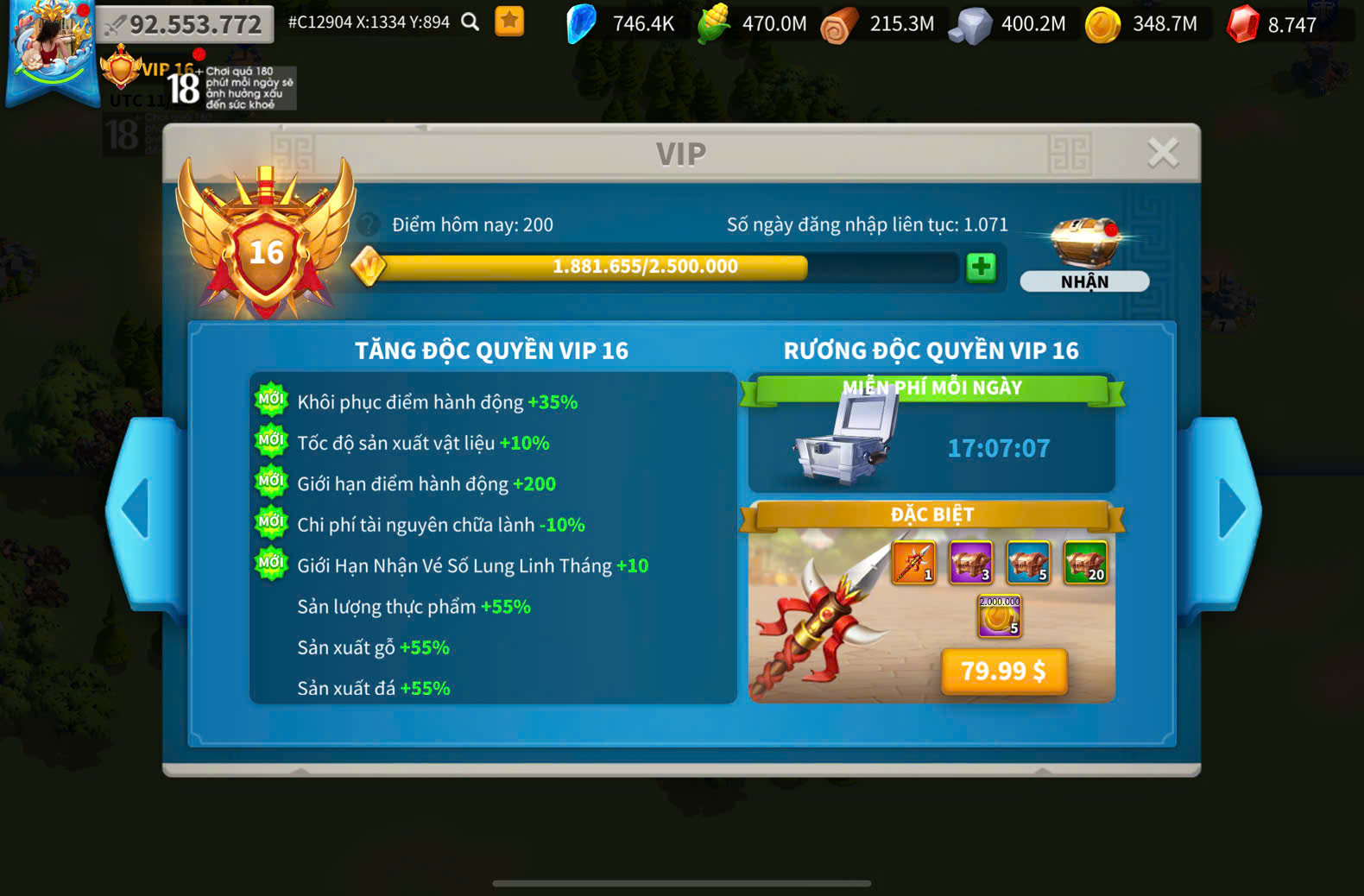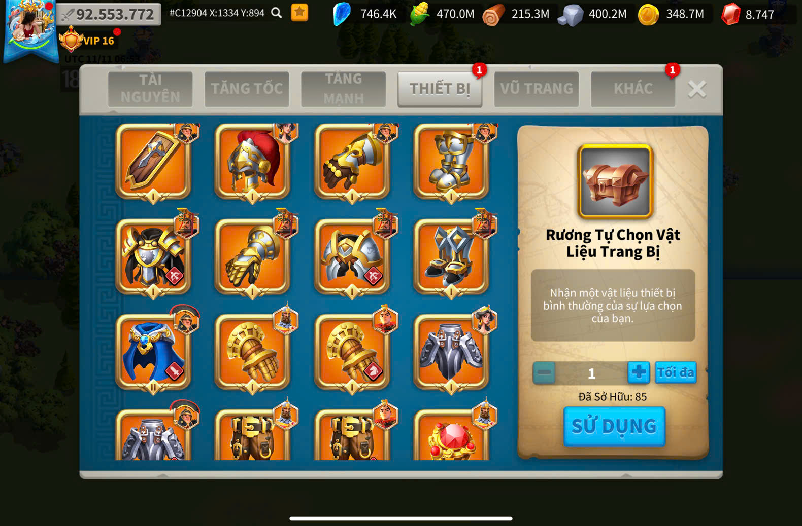 Acc Vip 16 vũ trang siêu ngon
