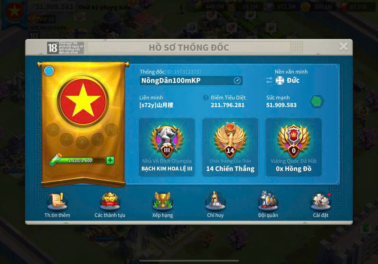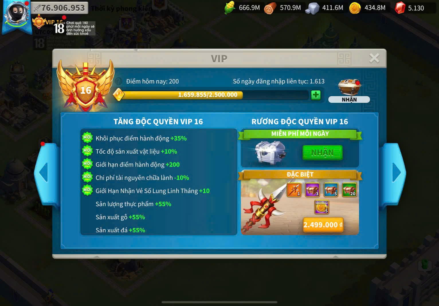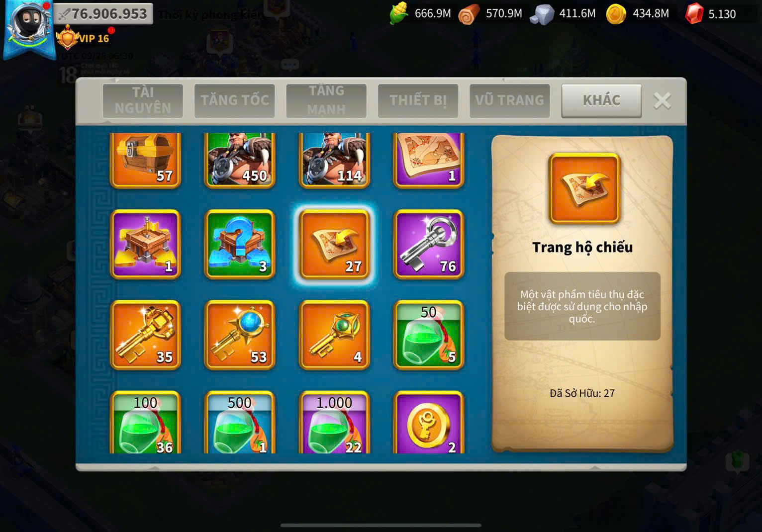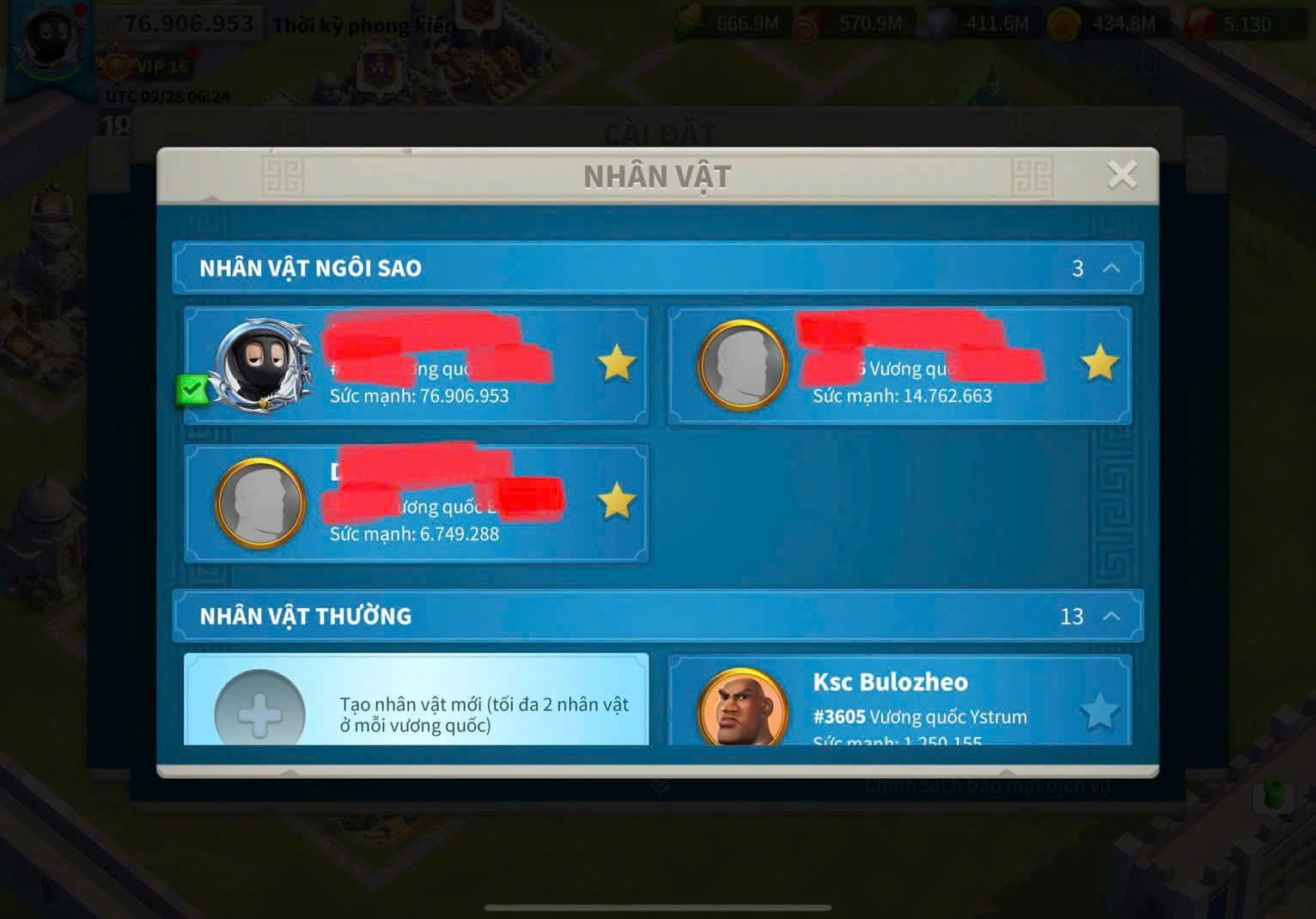 Acc Vip 16 full 5 sét cam + đủ vé ngon