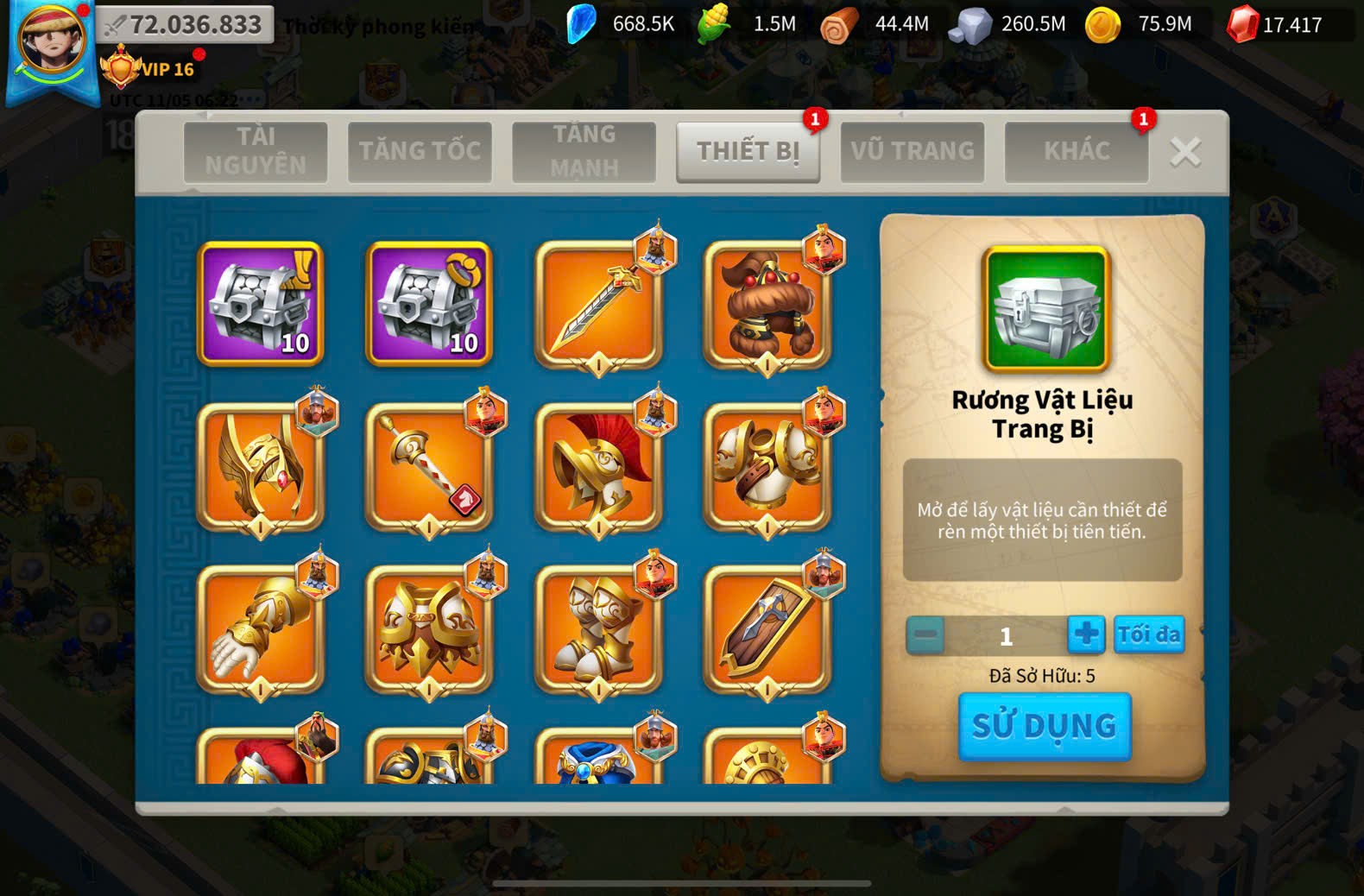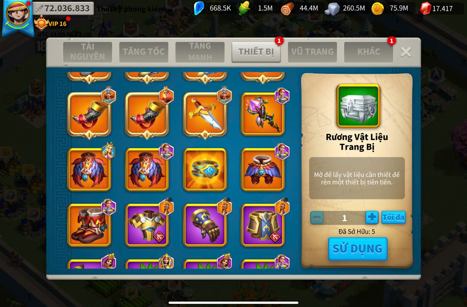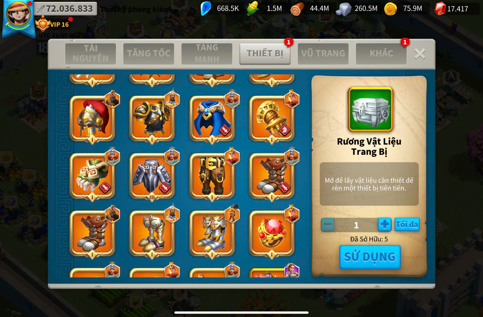 Acc Vip 16 max 15 cam 5 sét đồ ngon