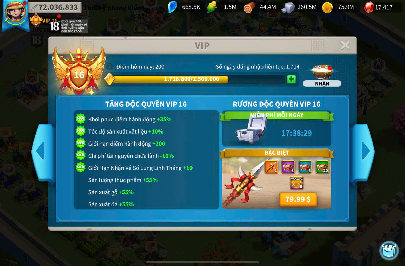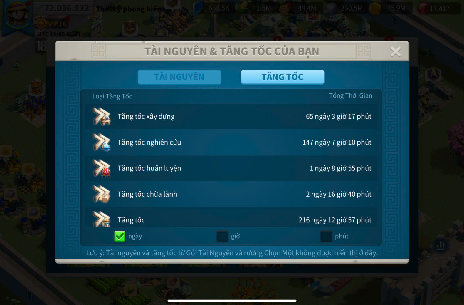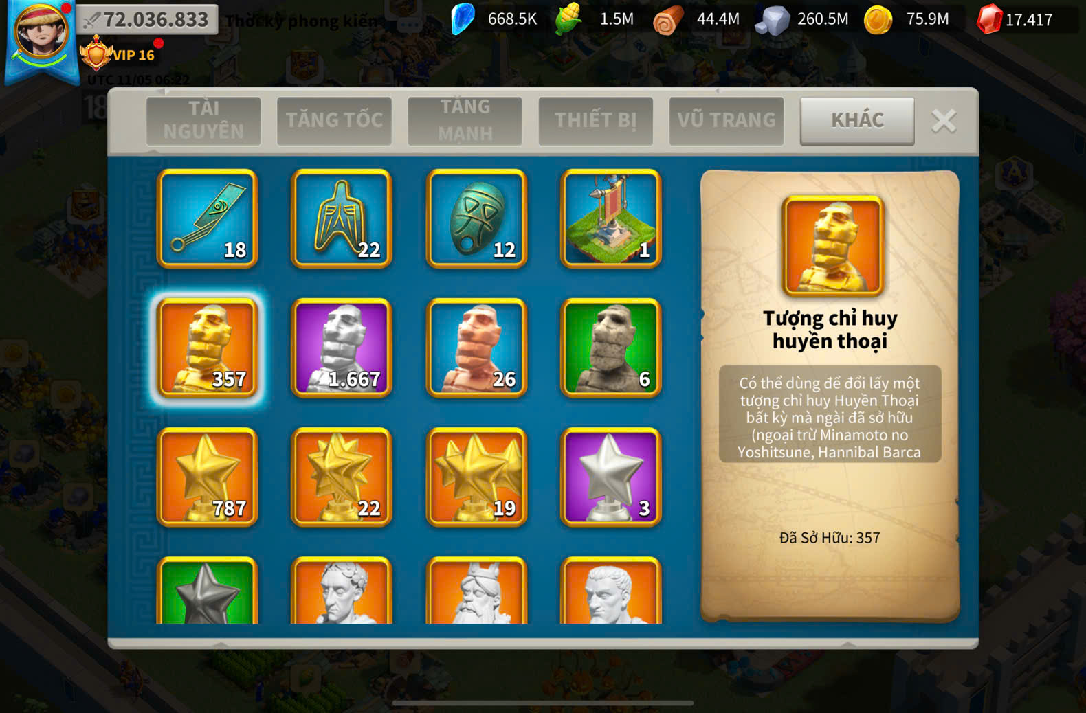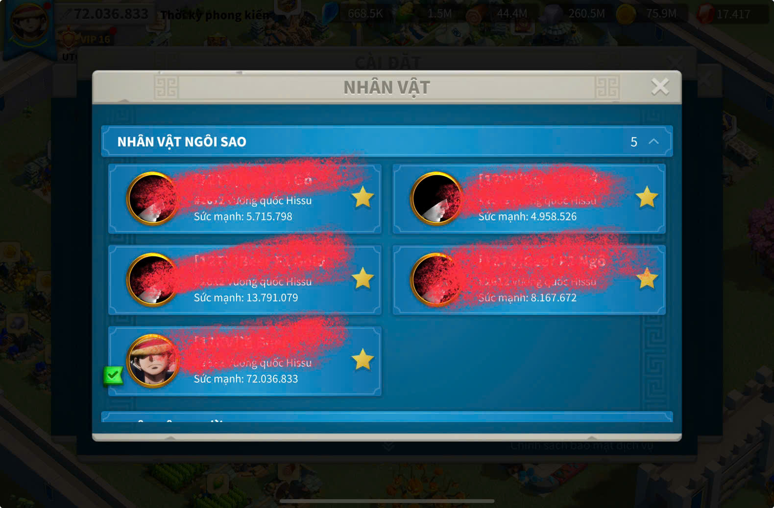 Acc Vip 16 max 15 cam 5 sét đồ ngon