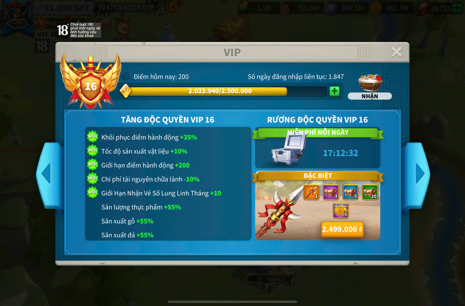Acc Vip 16 max 20 cam + 5 sét đồ ngon + 2 acc farm