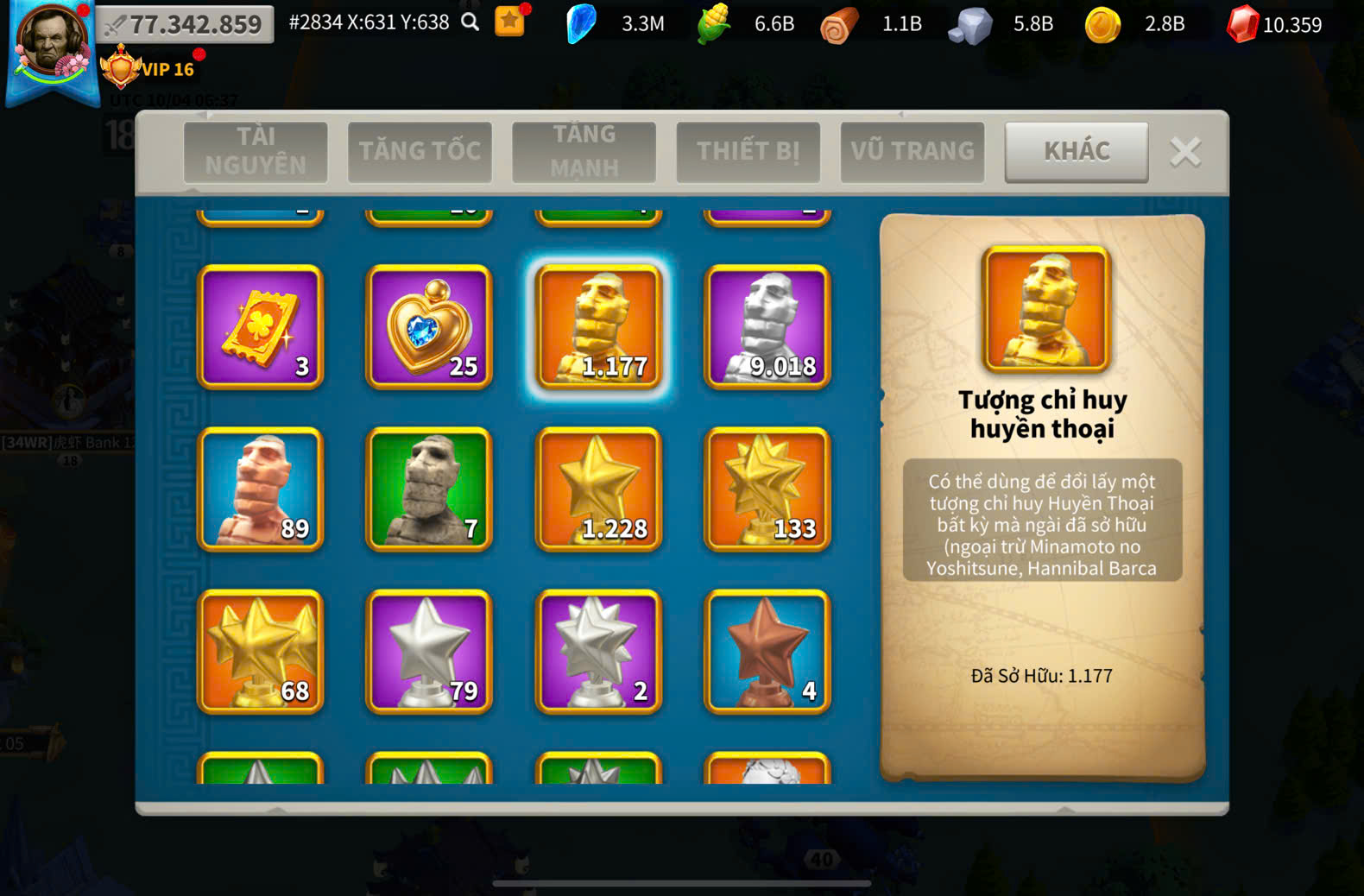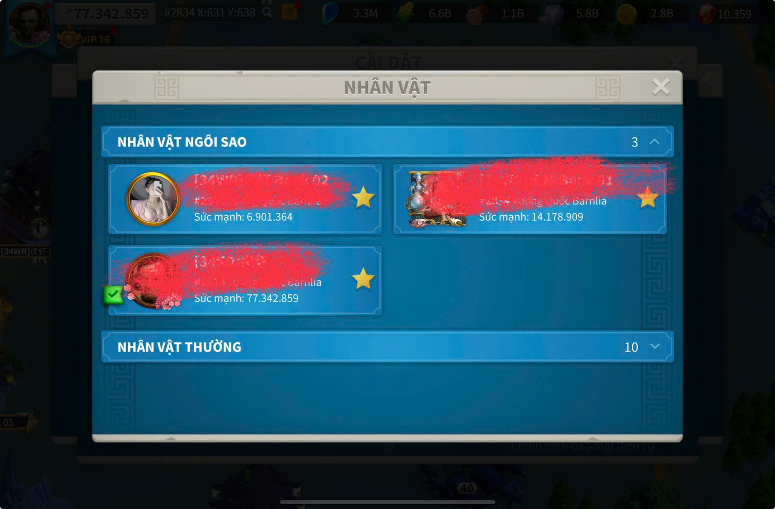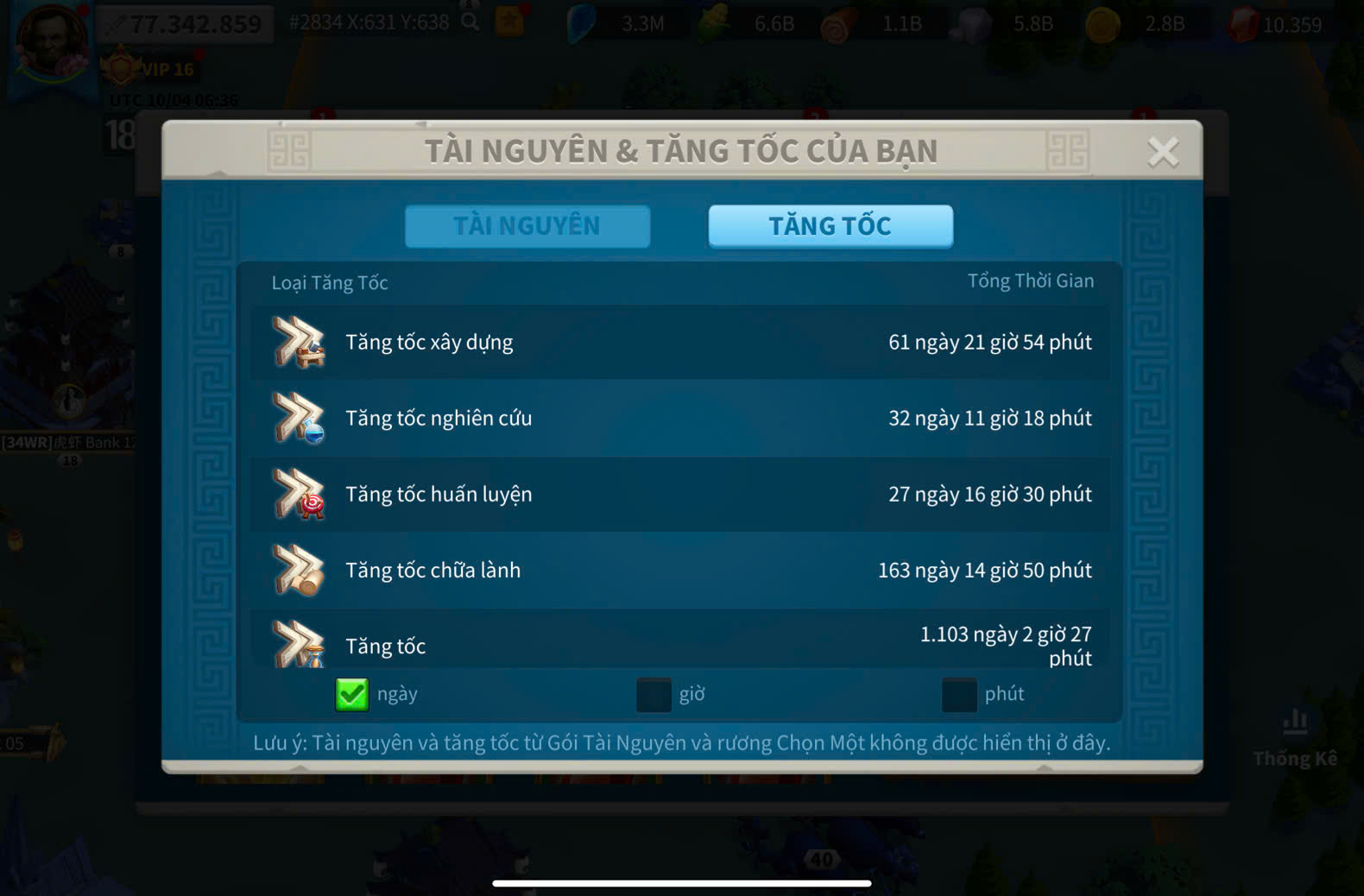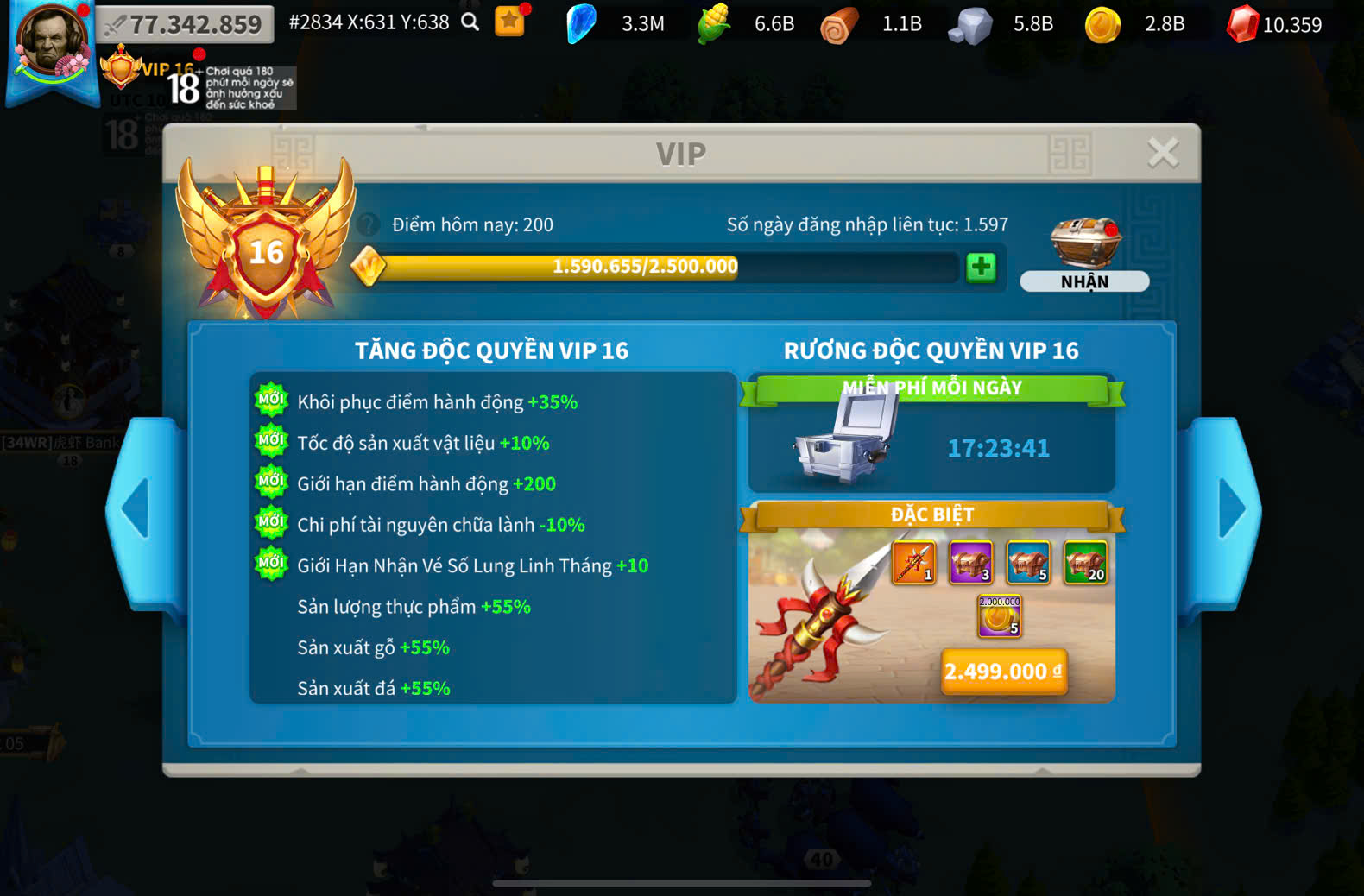 Acc Vip 16 nhà thiên đỉnh kỵ ngon + dư 1177 trọc + 1100 ngày tăng tốc + kẹp 2 farm + trang bị ngon