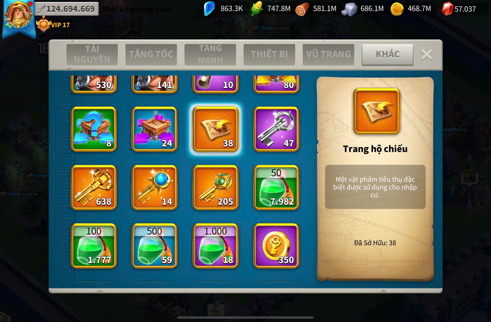 Acc Vip 17 max 22 cam có 39 vé kill 8 tỷ 3