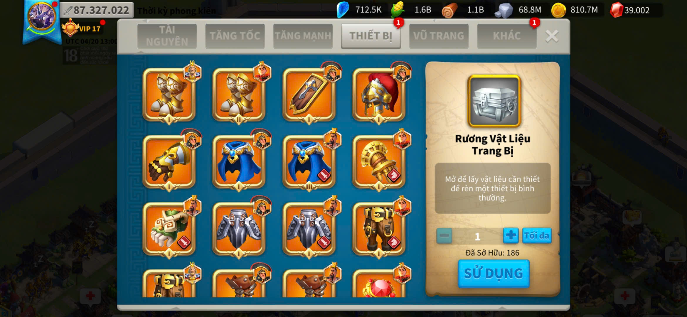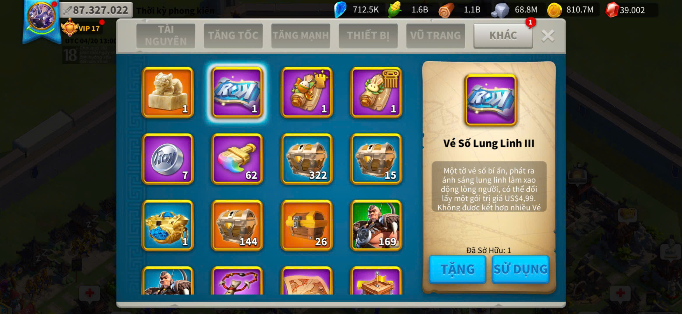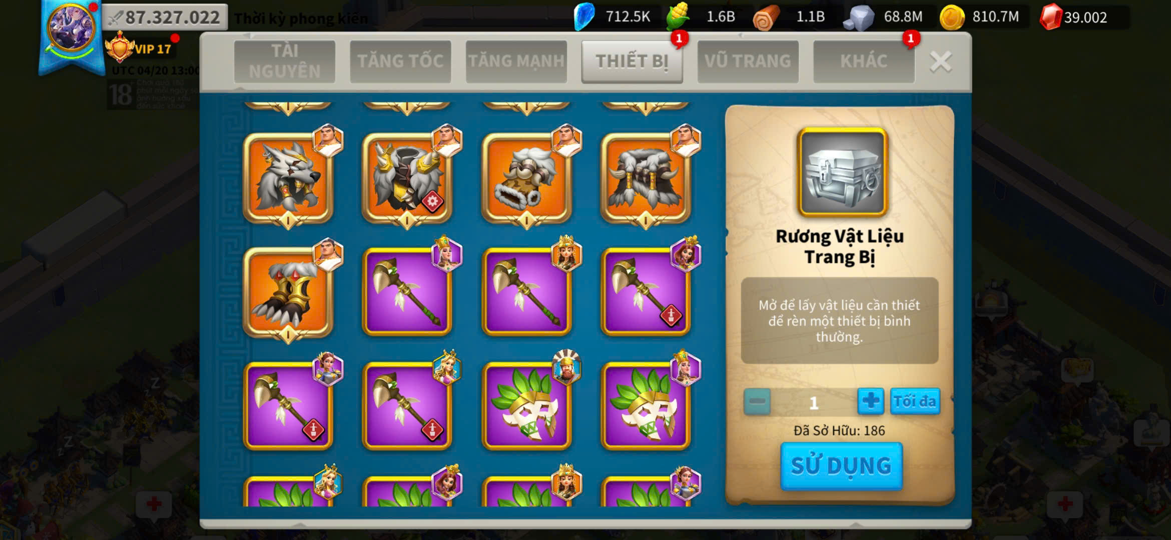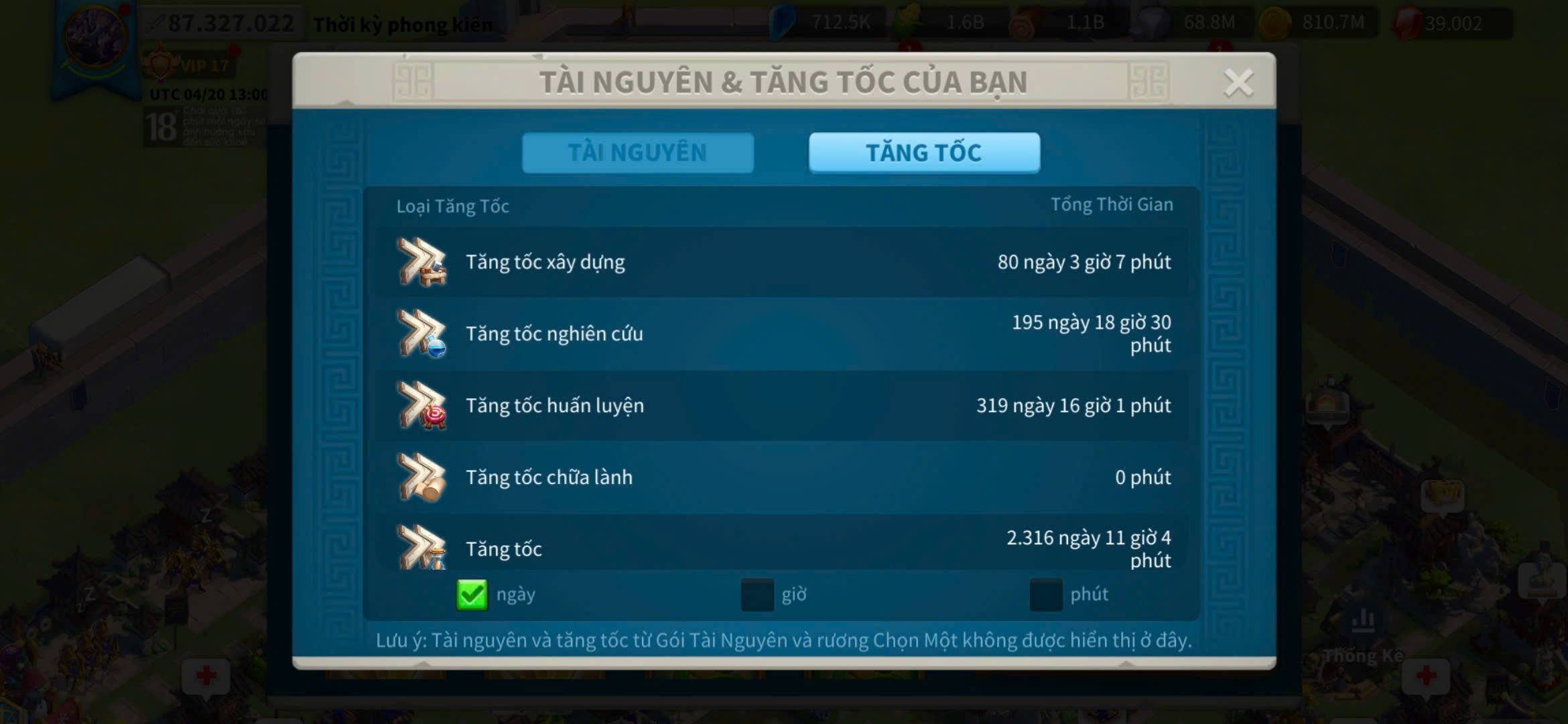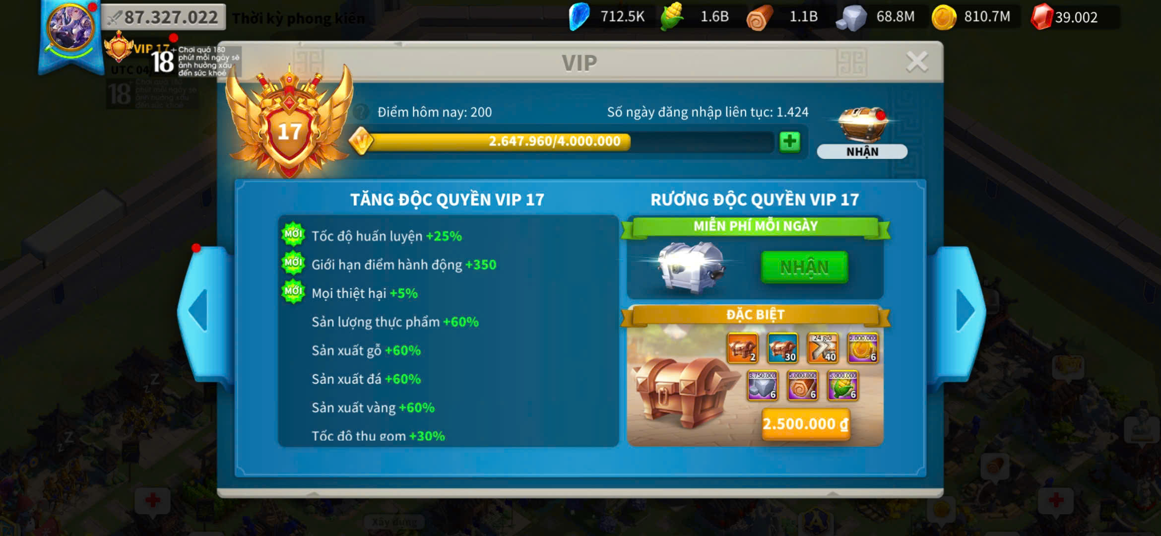 ACC VIP 17 sét talen bộ và 5 sét đồ ủ tăng tốc 2500 ngày kẹp 5 farm