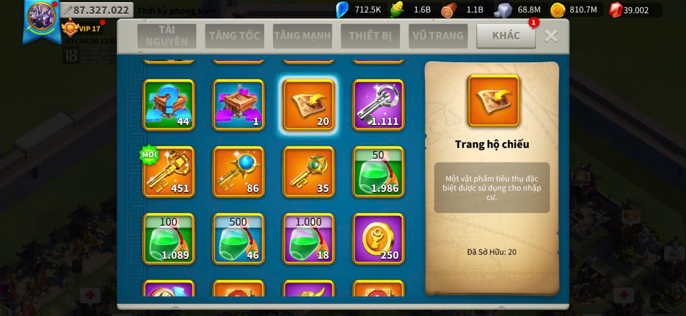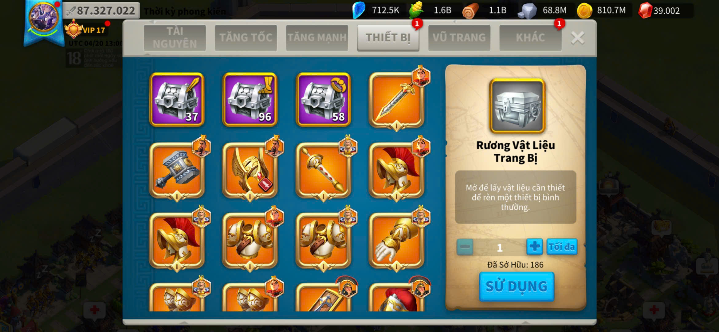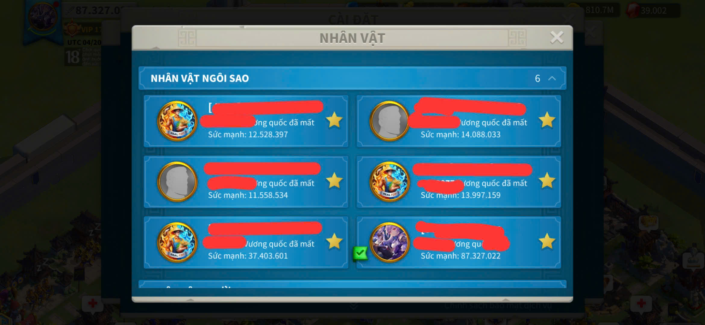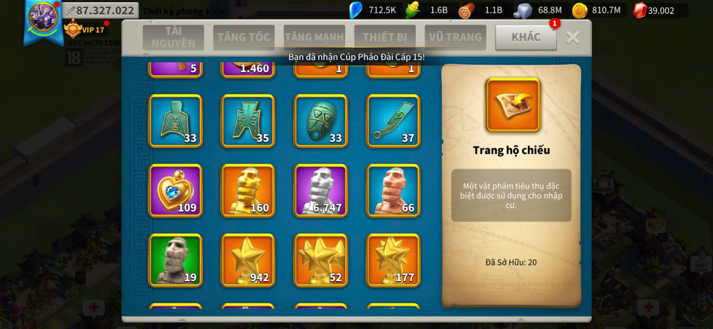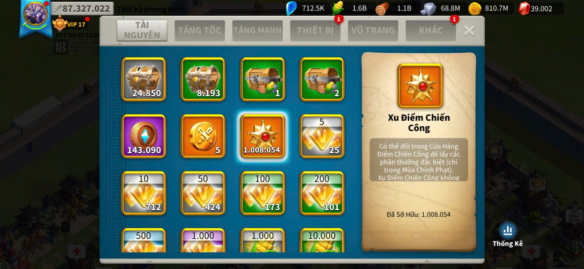 ACC VIP 17 sét talen bộ và 5 sét đồ ủ tăng tốc 2500 ngày kẹp 5 farm