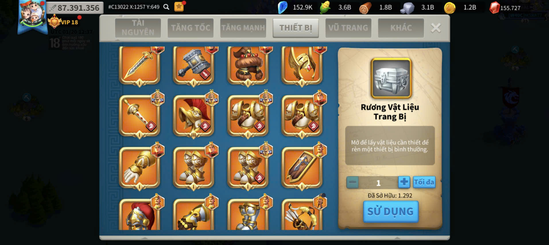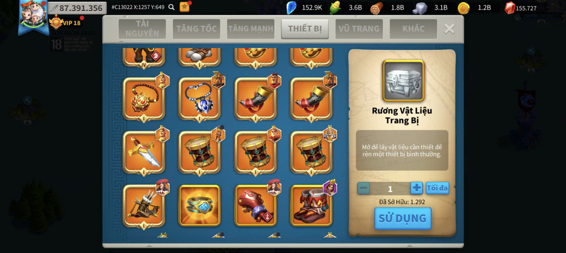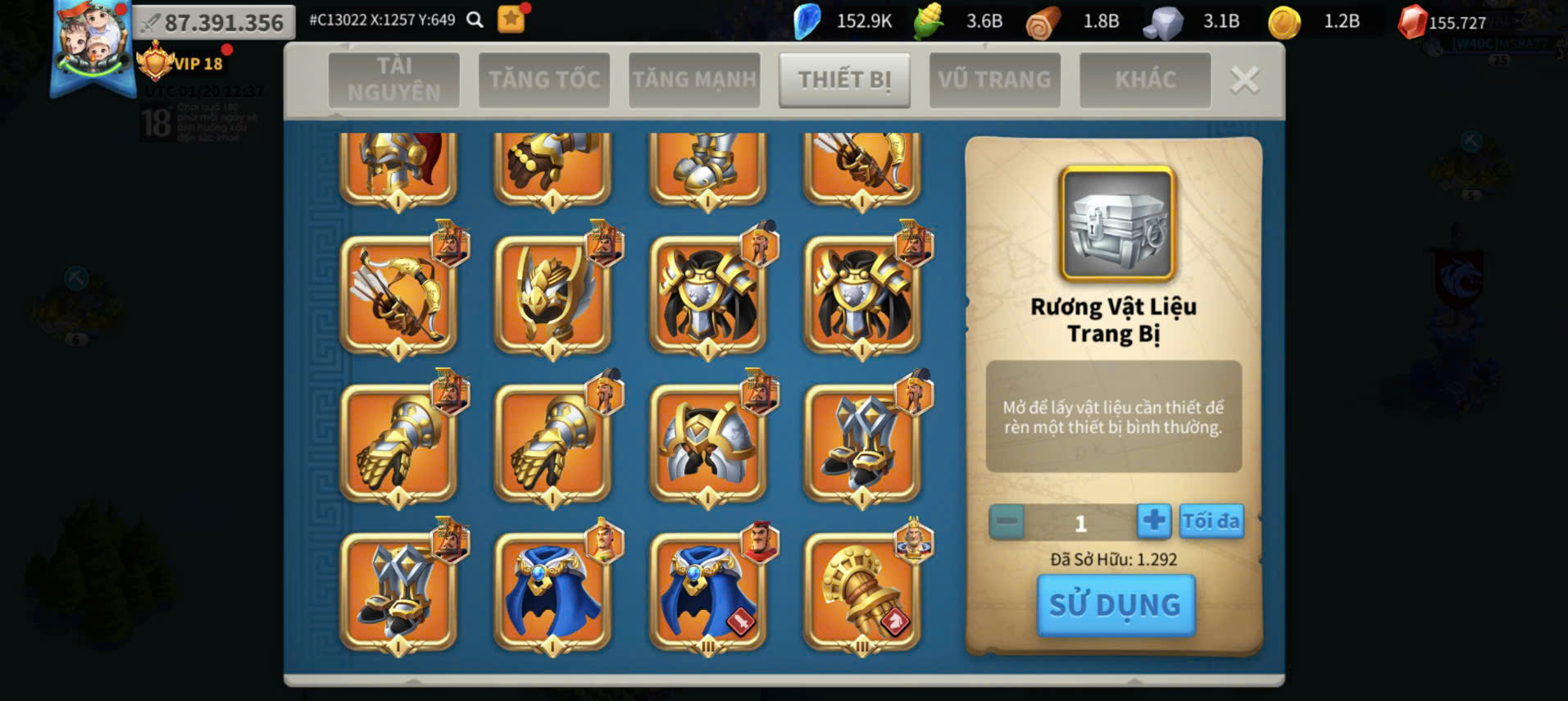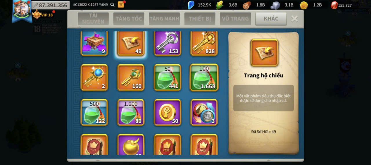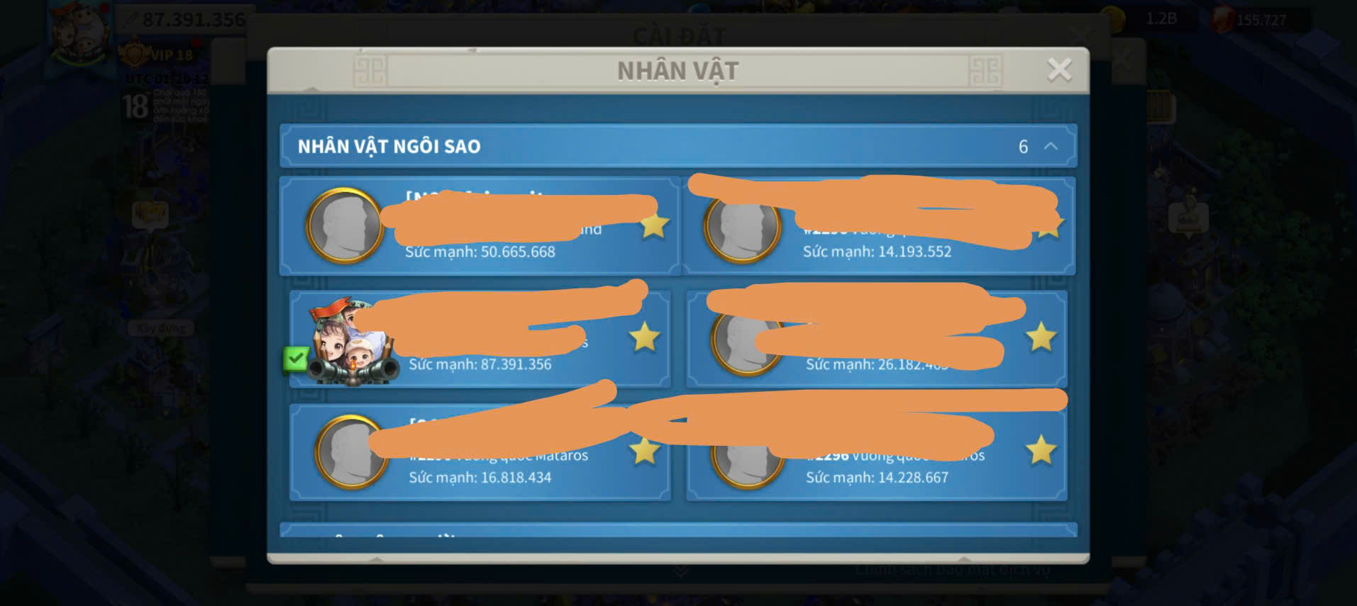 Acc Vip 18 full 6 sét cam + đủ vé + dư 155k gem kẹp 5 acc farm