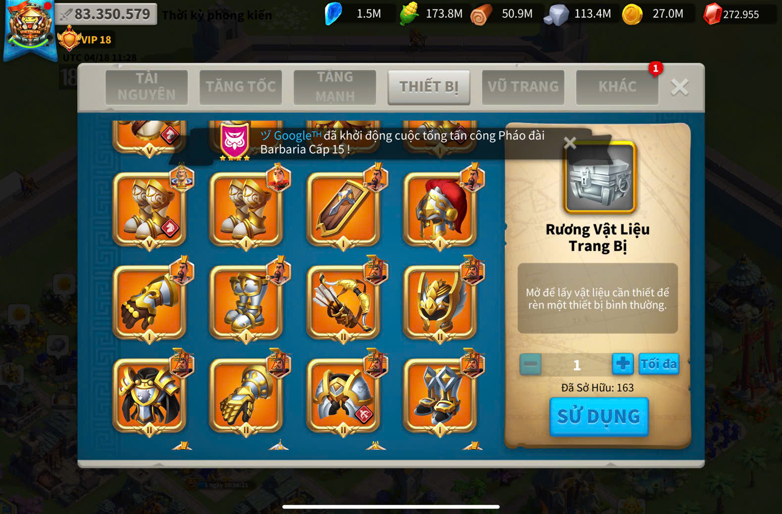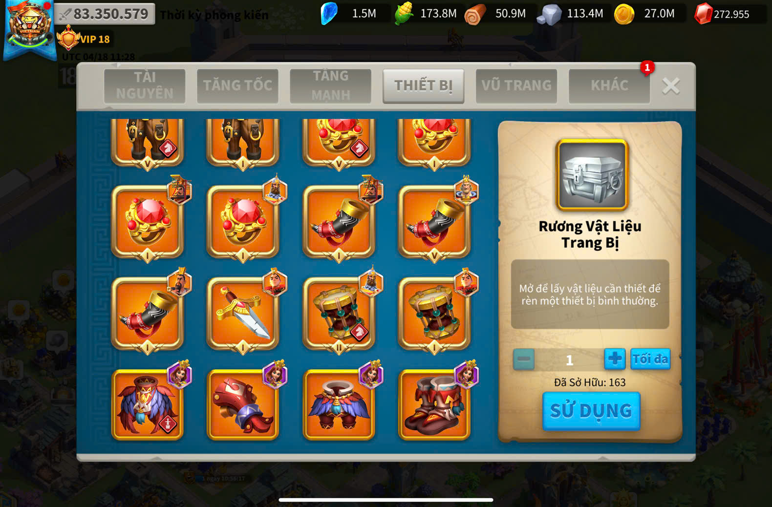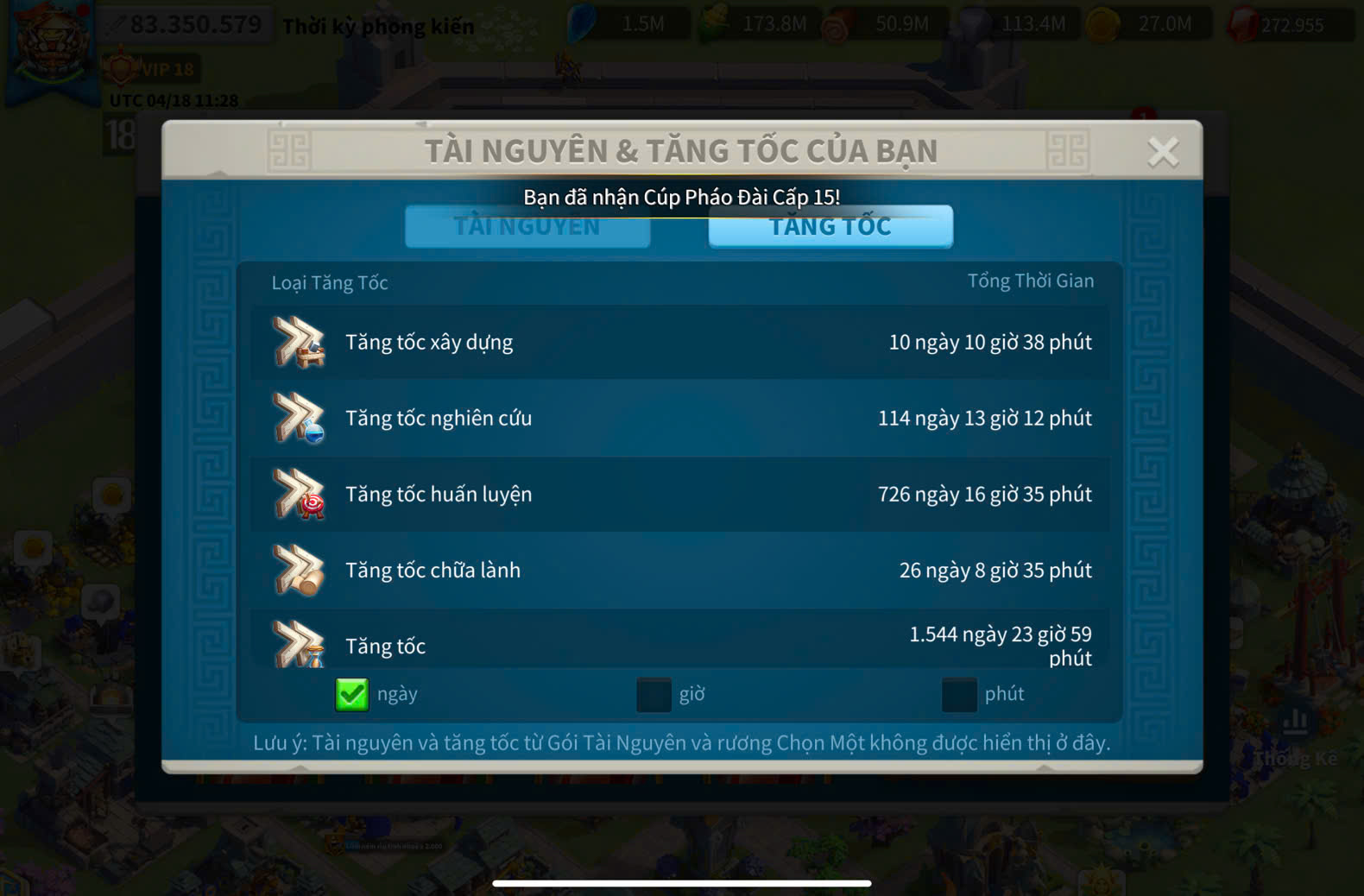 ACC VIP 18 ( key kỵ + 5 ) và ủ 2200 ngày tăng tốc + dư 220k gem + 1220 trọc