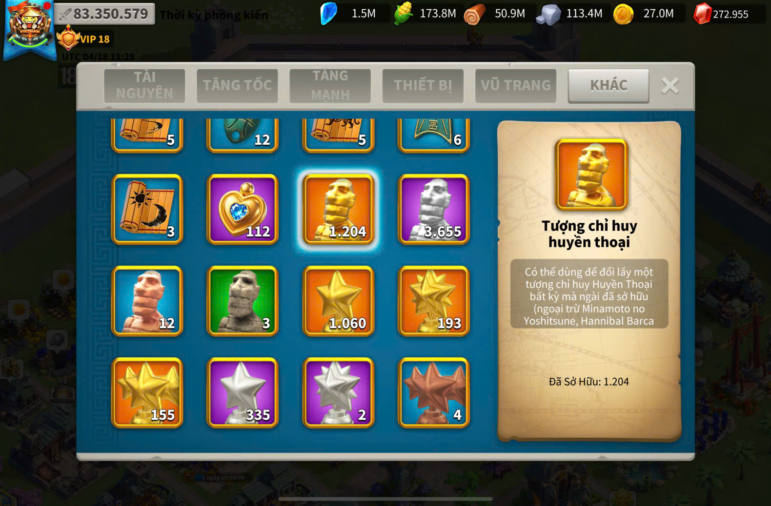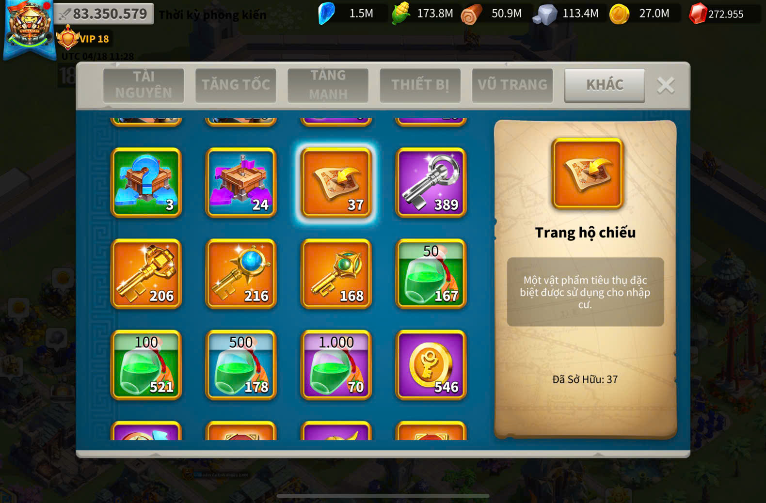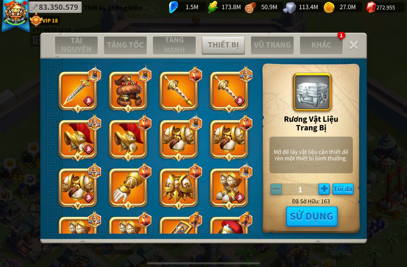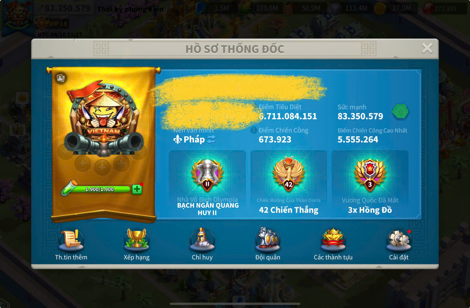 ACC VIP 18 ( key kỵ + 5 ) và ủ 2200 ngày tăng tốc + dư 220k gem + 1220 trọc