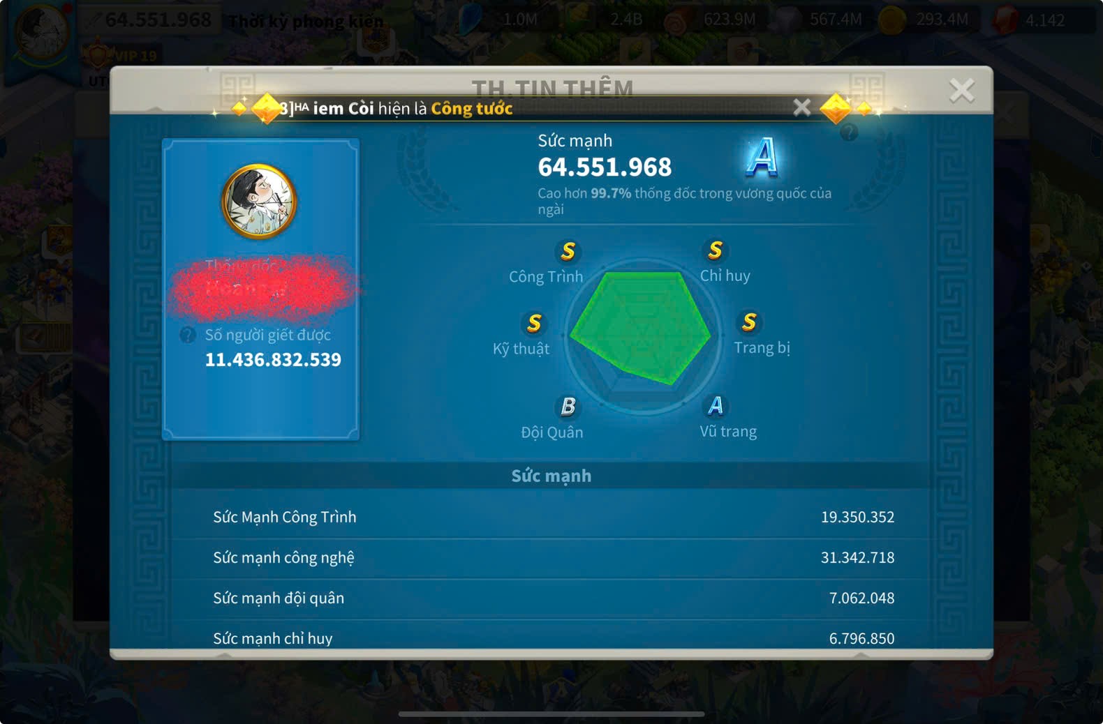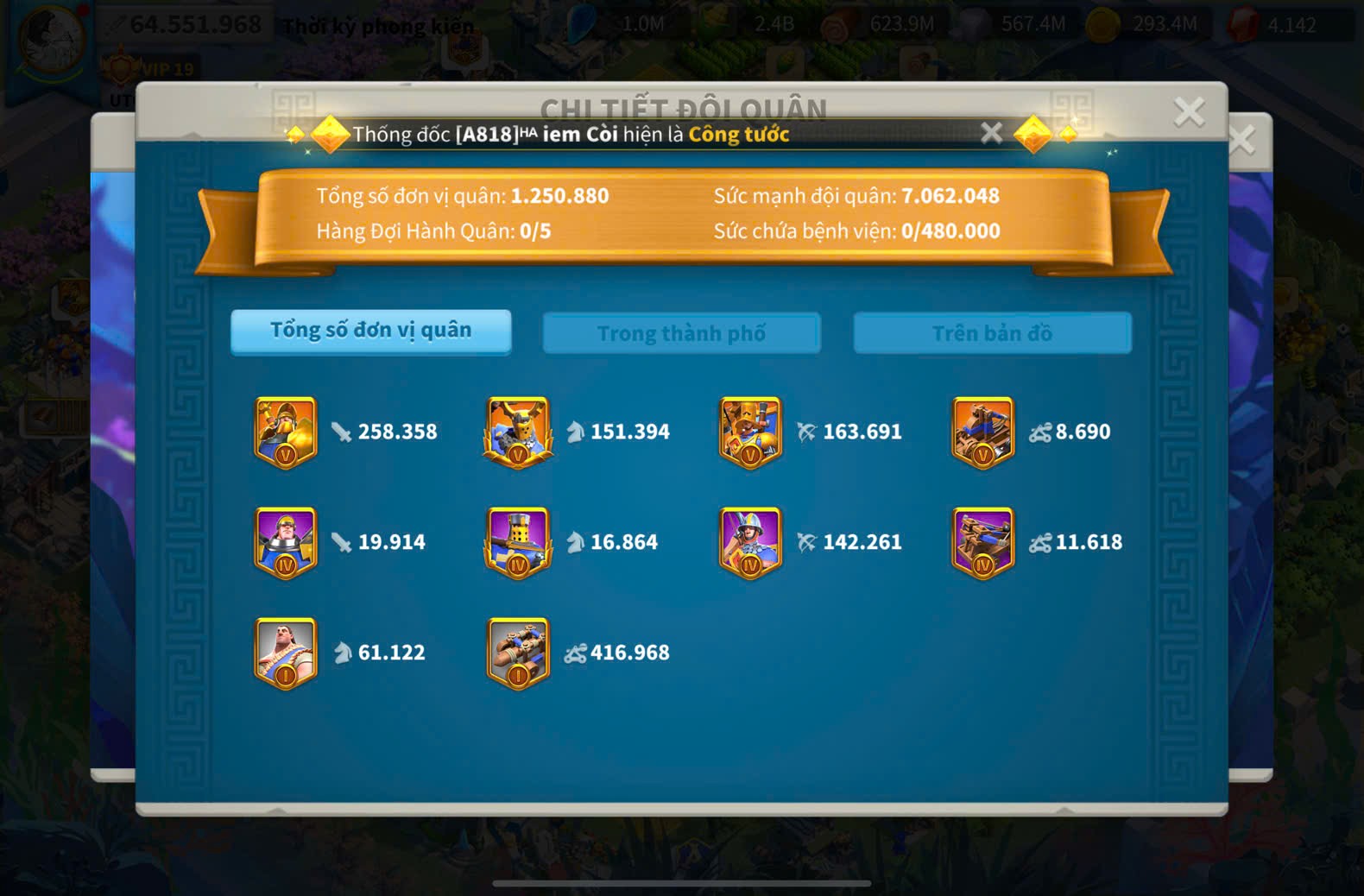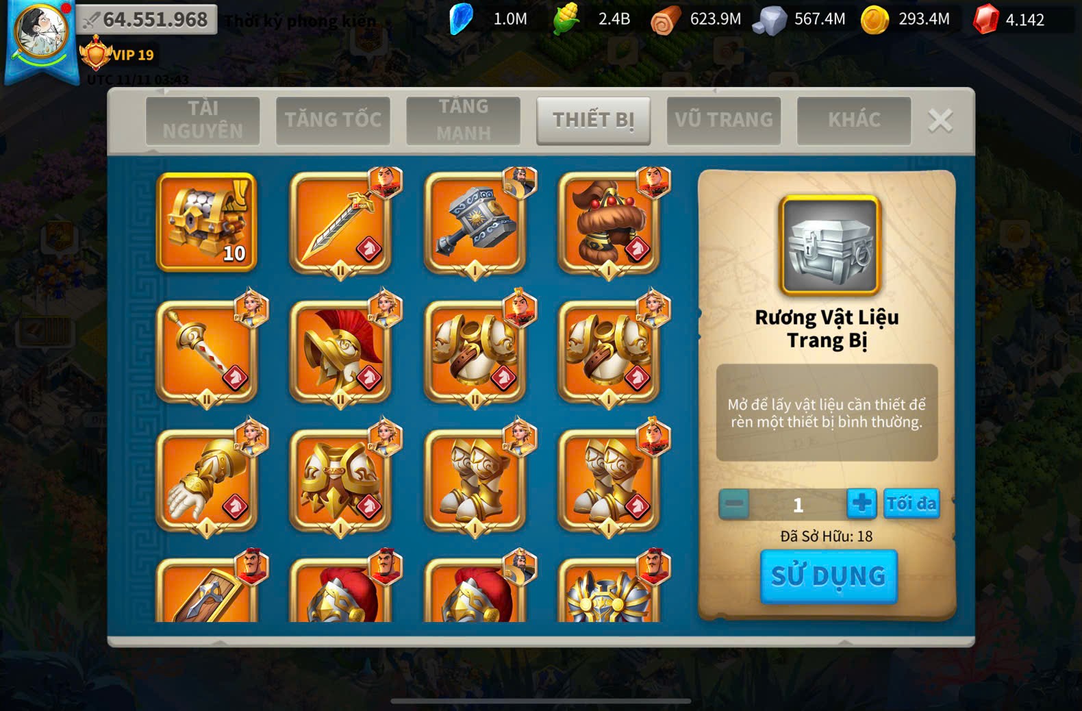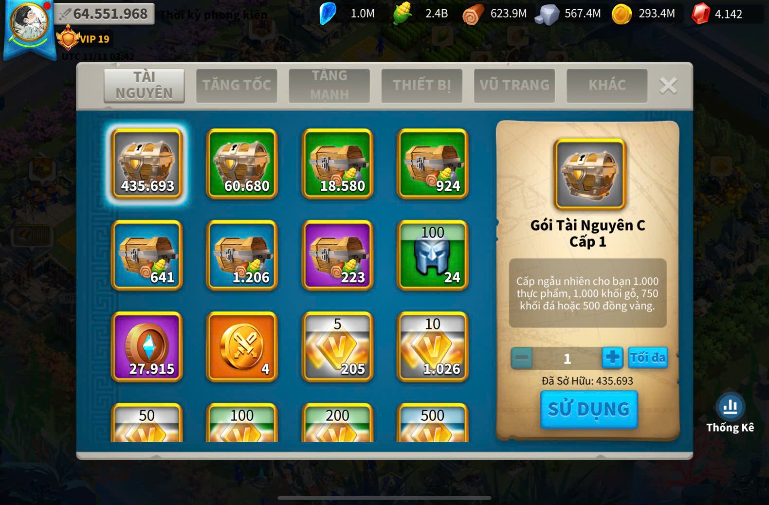 Acc Vip 19 Bản Quốc Tế - 30 talen dư 100 ngày gem + 103 ngày nguyên liệu + 3800 ngày tăng tốc - 22 tỷ rss kho