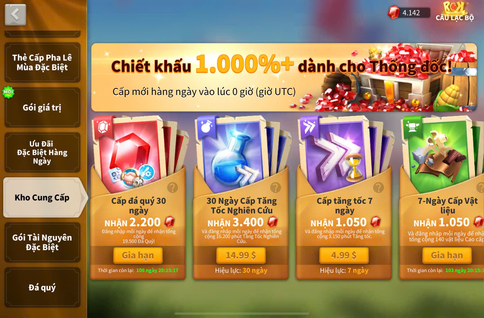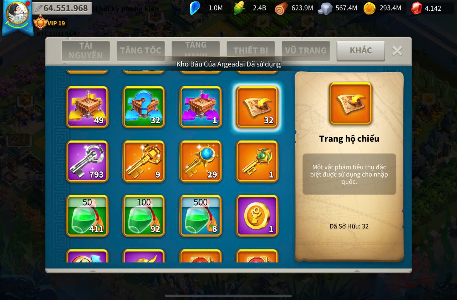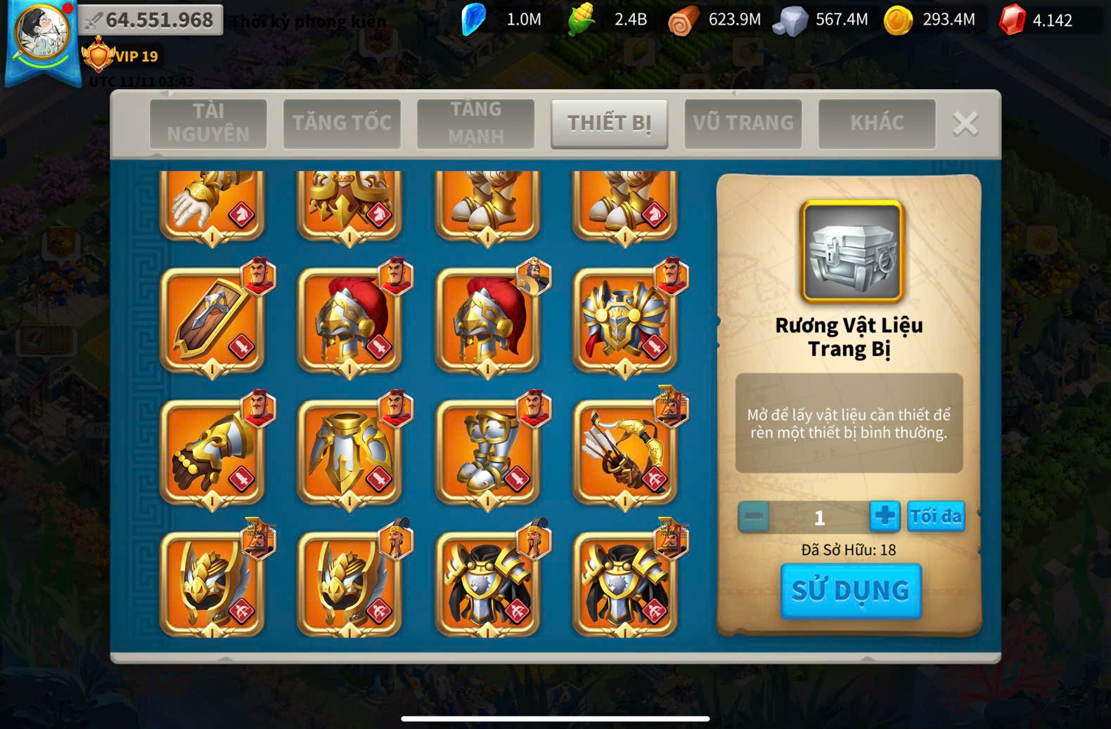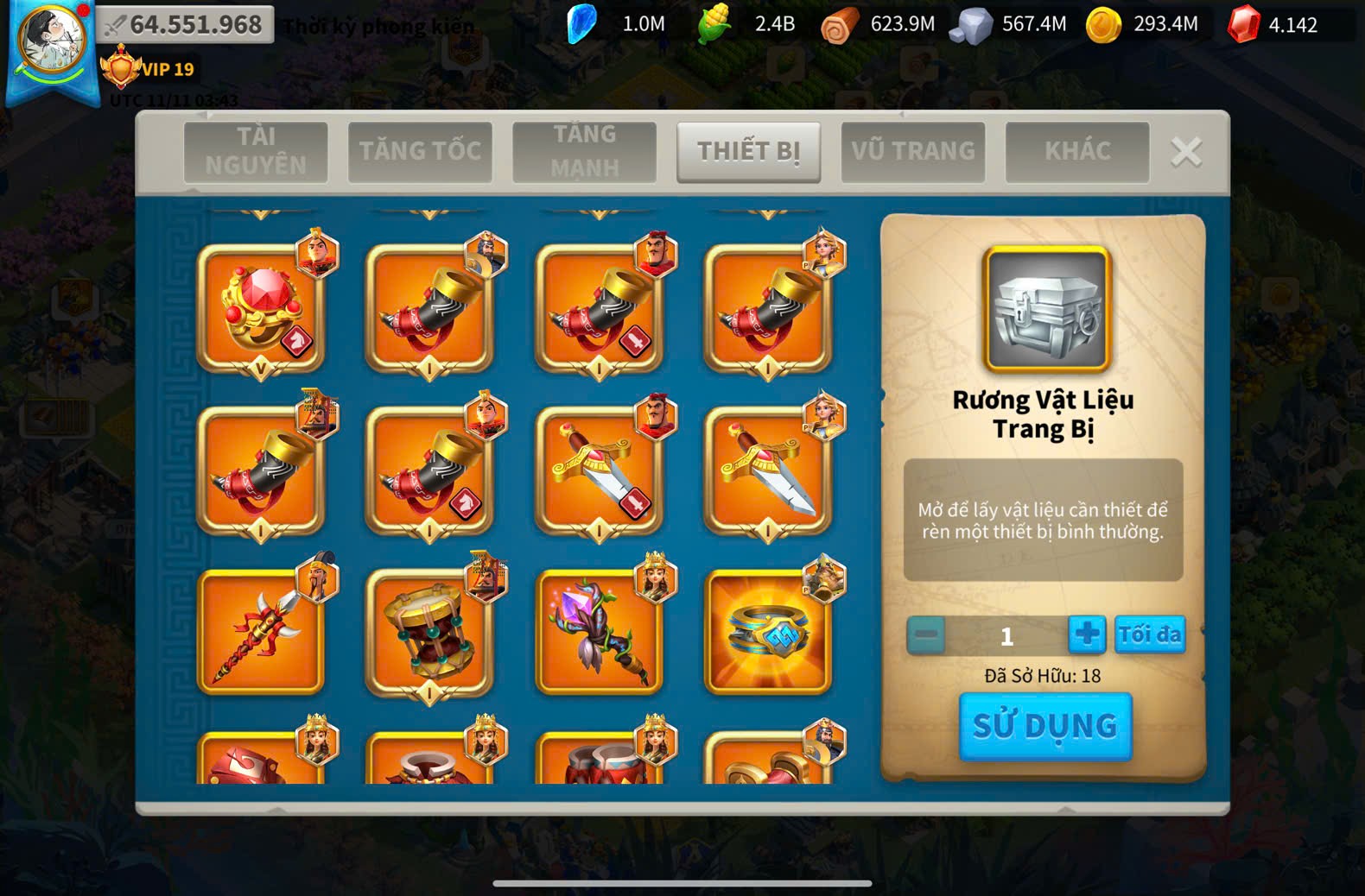 Acc Vip 19 Bản Quốc Tế - 30 talen dư 100 ngày gem + 103 ngày nguyên liệu + 3800 ngày tăng tốc - 22 tỷ rss kho