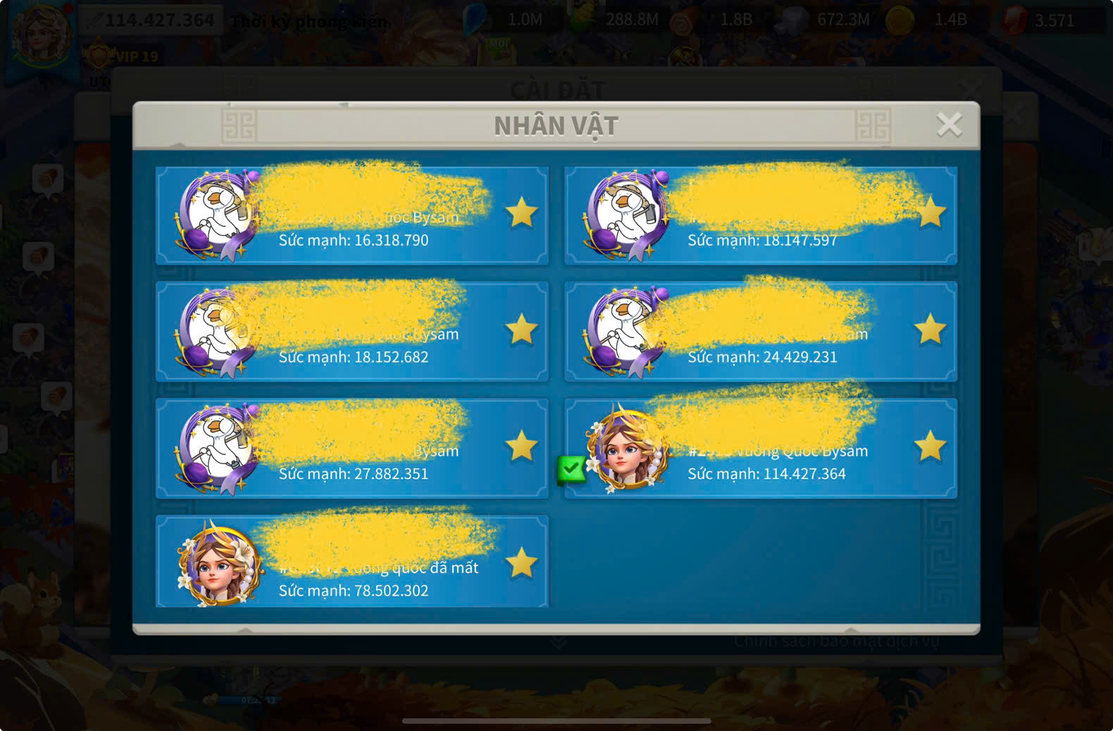 ACC VIP 19 key kỵ nhà 16% all siêu ngon vip làm key và kẹp 6 acc farm có 65 vé dư 800 trọc